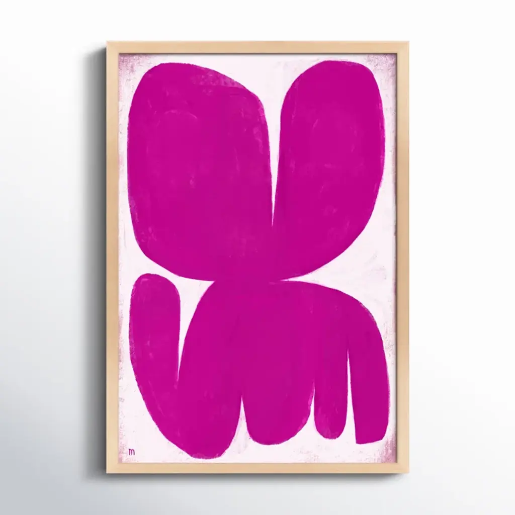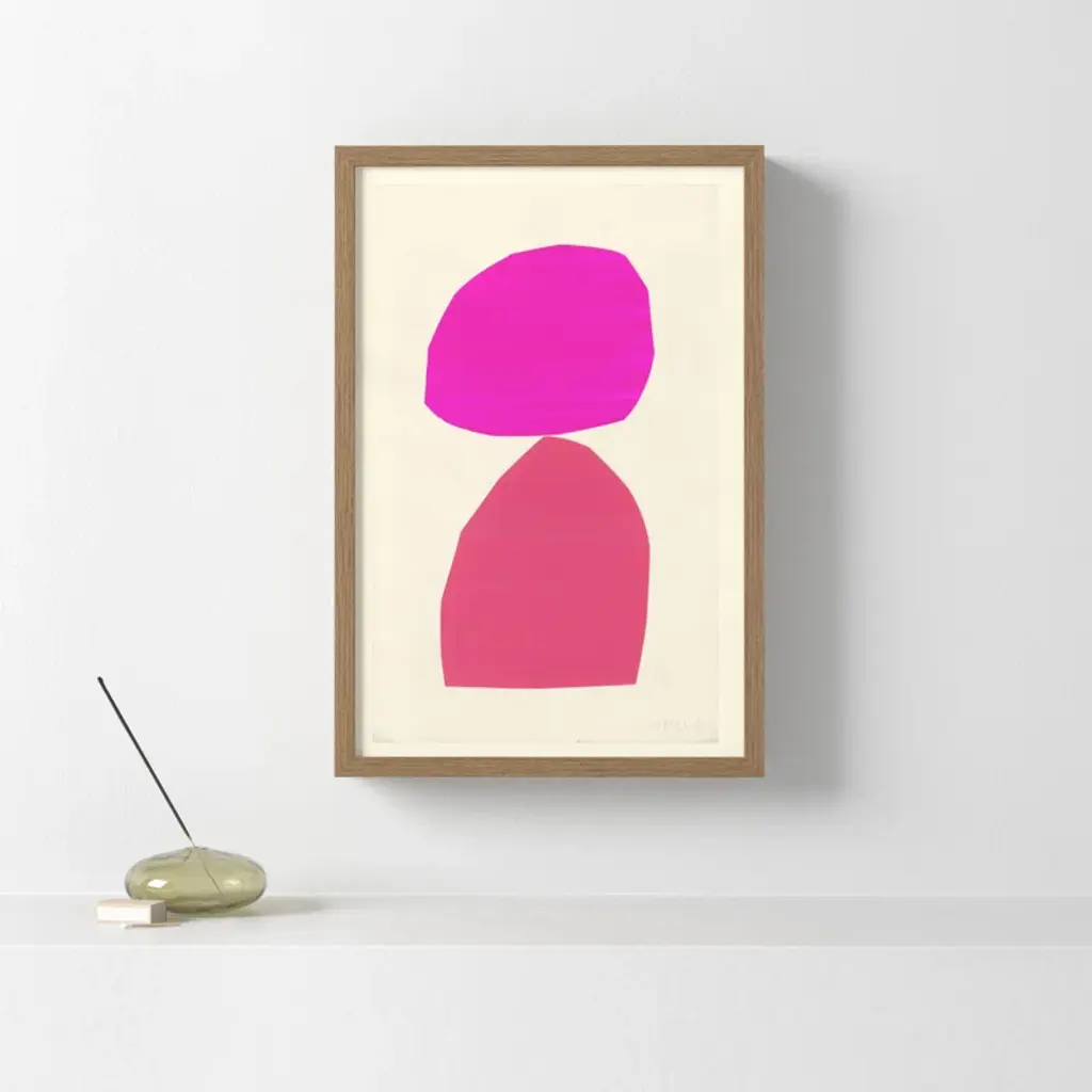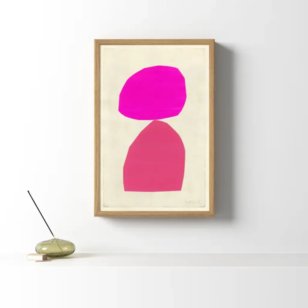 Sea Farer. Defined by its rich, hand-mixed color and balanced forms, this print is a reproduction of painted + cut paper collage work by artist Susan Hable. It was originally conceived as an abstract bird, but evokes a mood more than a creature. Printed on archival paper + arrives in a wooden frame.