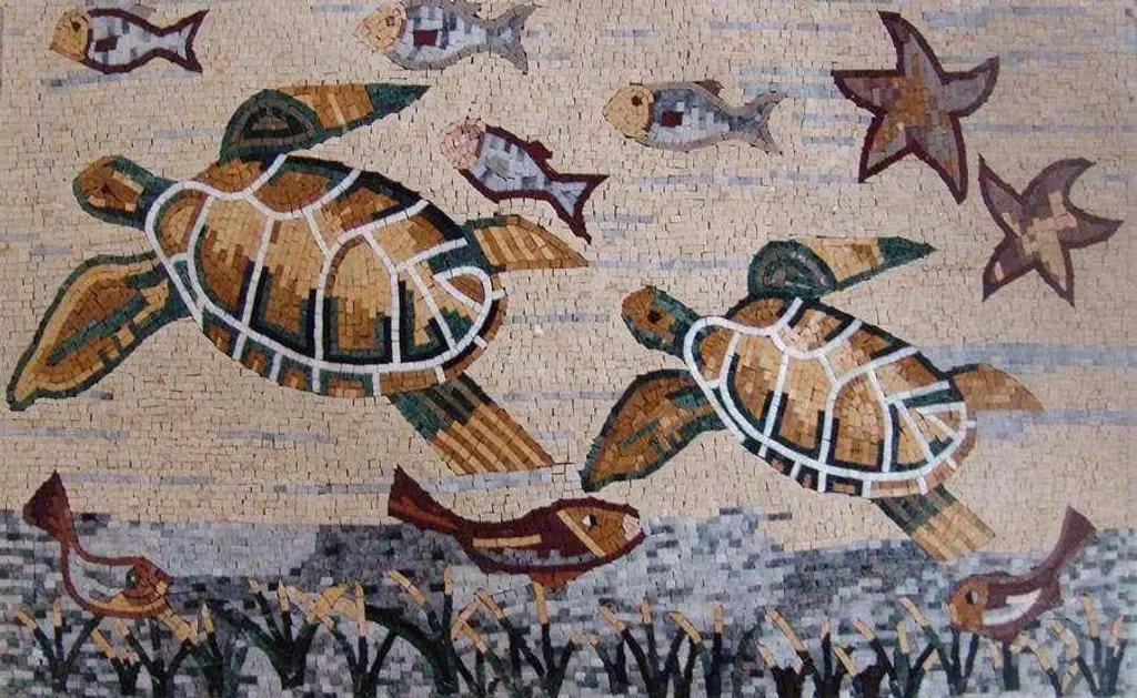 Introducing our exquisite Sea Turtles Marble Mosaic, a stunning piece of art that brings the beauty of the ocean into your home. This rectangular, handmade mosaic showcases enchanting sea turtles gracefully swimming through the cerulean waters, creating a serene and captivating atmosphere in any space. Crafted with care, the Sea Turtles Marble Mosaic is composed of 100% natural stones and meticulously arranged artistic tiles, ensuring that each piece is unique and filled with rich textures.Perfect for bath decor, the Sea Turtles Marble Mosaic adds a touch of elegance to your bathroom, transforming it into a tranquil retreat reminiscent of the ocean depths. Imagine soaking in a warm bath surrounded by the charm of these gentle creatures, evoking feelings of peace and relaxation. Additionally, this remarkable mosaic is an excellent choice for enhancing the beauty of your pool area. Add a splash of art to your surroundings as the Sea Turtles Marble Mosaic glimmers under the sun, creating a vibrant focal point that is sure to impress your guests.Whether you’re adding a decorative touch to your home or looking for a unique gift for a loved one, the Sea Turtles Marble Mosaic is a versatile choice that embodies the spirit of marine life. Embrace the artistry and craftsmanship of this beautiful mosaic that not only serves as a decorative piece but also celebrates the majestic sea turtles that roam our oceans. Bring a piece of the underwater world to your living spaces with the stunning Sea Turtles Marble Mosaic. Dive into a world of beauty and elegance today!