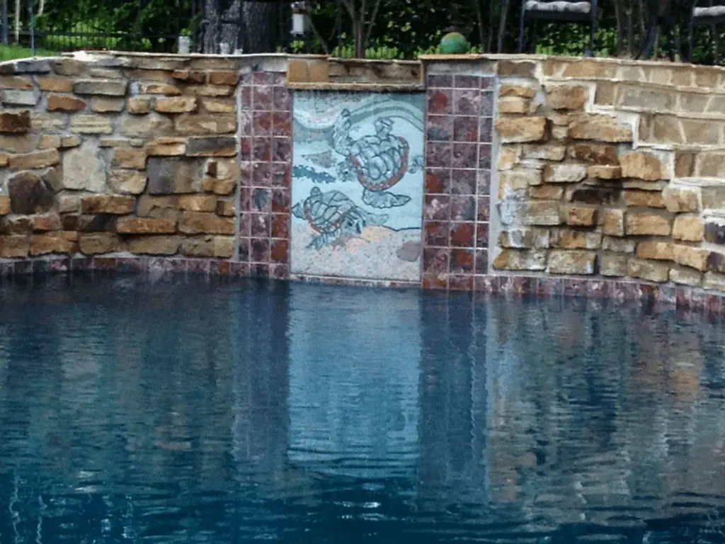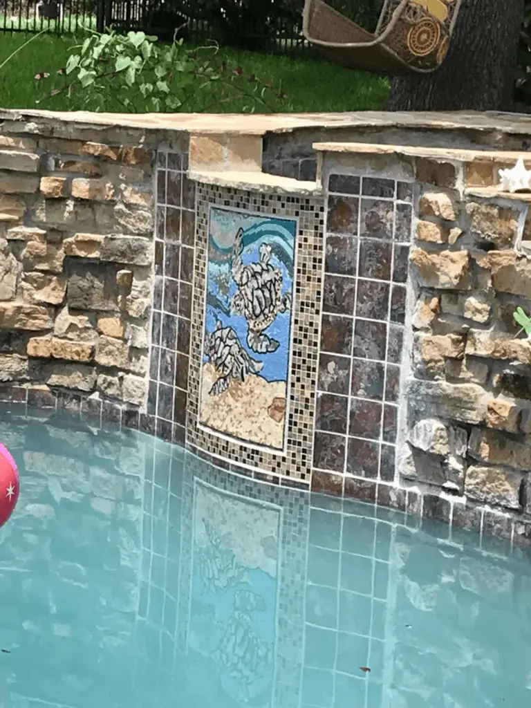 Introducing our stunning "Sea Turtles Mosaic," a handcrafted masterpiece that brings the beauty of marine life into your home or outdoor space. This exquisite mosaic features two elegant sea turtles, meticulously designed using natural stones and hand-cut tiles that highlight the artistry and attention to detail involved in its creation. Each piece of this mosaic is carefully selected to create a vibrant and captivating design that captures the essence of the ocean. The natural stones provide a rich texture and depth, while the hand-cut tiles bring unique character and charm, ensuring that no two mosaics are exactly alike. This makes the Sea Turtles Mosaic not only a beautiful decorative piece but also a one-of-a-kind work of art.Perfectly suited for various settings, this mosaic design is an ideal addition to swimming pools, patios, or gardens. It adds a touch of elegance and a coastal vibe, transforming any space into a serene escape reminiscent of sun-soaked shores and tranquil waters. Your guests will be enchanted by the intricate details and lively colors, making it a conversation starter in any gathering.Durable and weather-resistant, our Sea Turtles Mosaic is designed to withstand the elements while maintaining its stunning appearance. The high-quality materials ensure that it remains a focal point of beauty in your space for years to come.By choosing our Sea Turtles Mosaic, you’re not just selecting a decorative piece; you’re embracing a story of craftsmanship, nature, and artistry. Dive into the world of oceanic charm and bring home this mesmerizing mosaic that will inspire a sense of peace and connection to the sea. Ideal for marine lovers and those looking to enhance their décor, this masterpiece is ready to make a splash in your life!