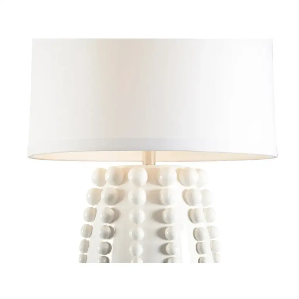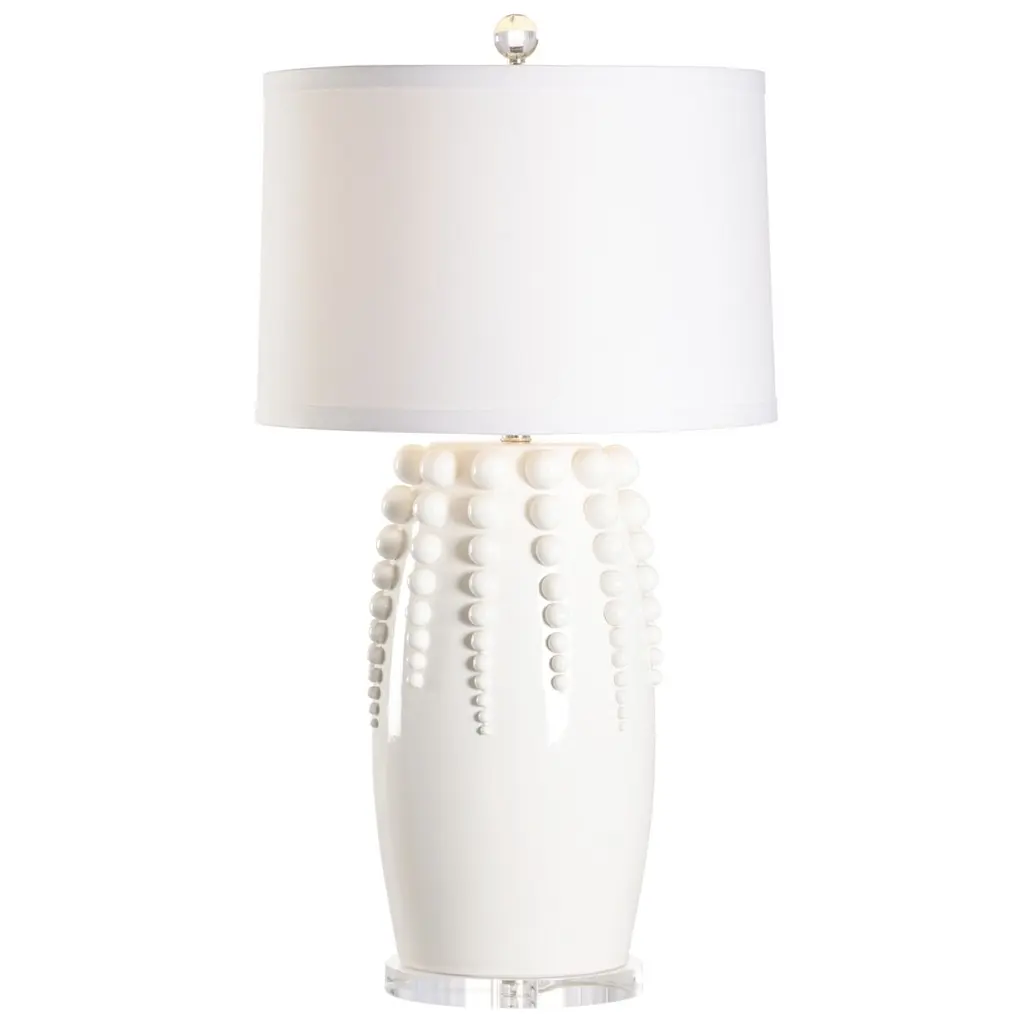 Create an eye-catching display with the Sea Urchin Lamp as the focal point. A white ceramic glaze finish, large silhouette with beaded details and an acrylic base brings a tasteful coastal feel to your home. Designed by Jamie Merida.