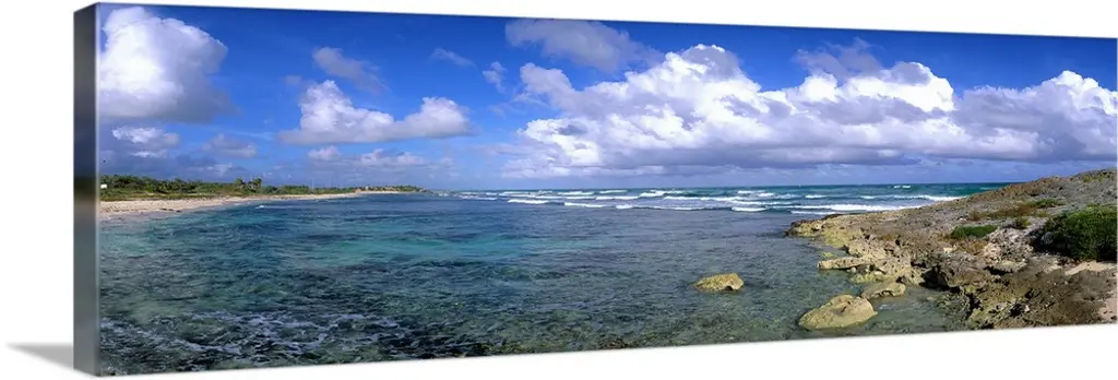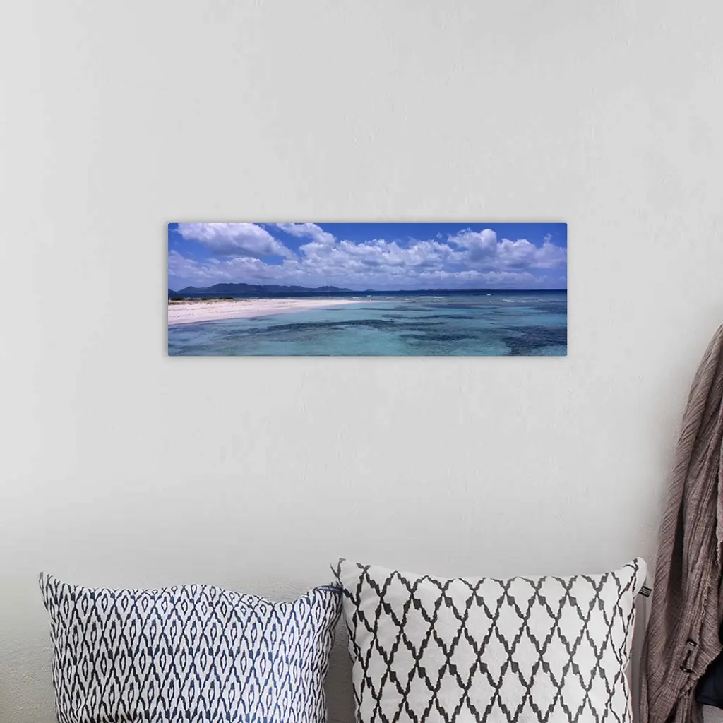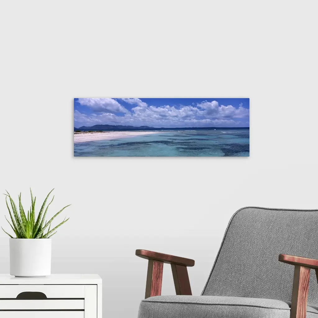 Sea with a mountain range in the background, Cove Bay, Anguilla wall art for home and office decor. Discover canvas art prints, photos, mural, big canvas art and framed wall art in GreatBigCanvas.com's varied collections.