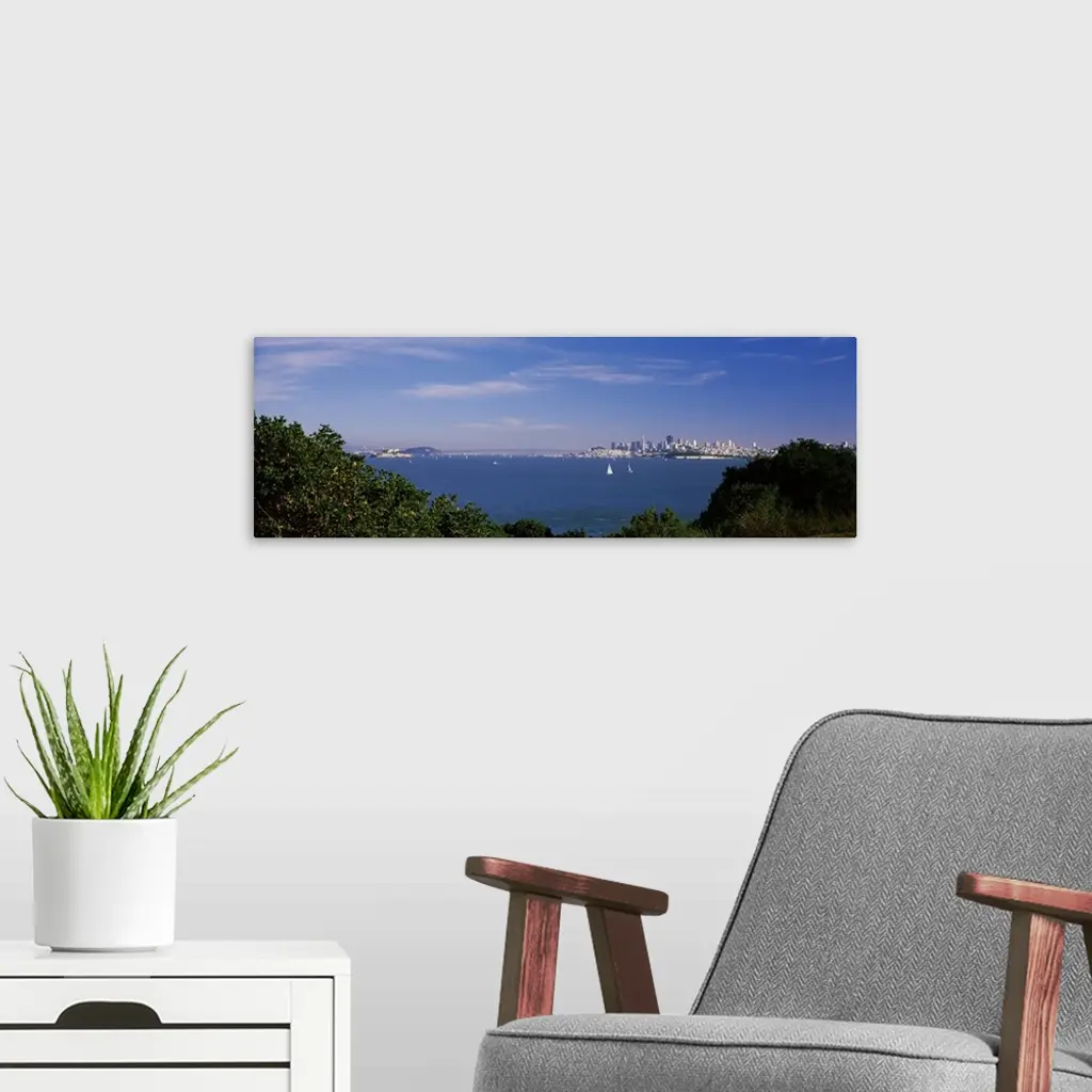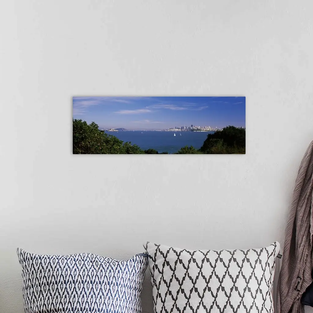 Sea with the Bay Bridge and Alcatraz Island in the background San Francisco Marin County California wall art for home and office decor. Discover canvas art prints, photos, mural, big canvas art and framed wall art in GreatBigCanvas.com's varied collections.