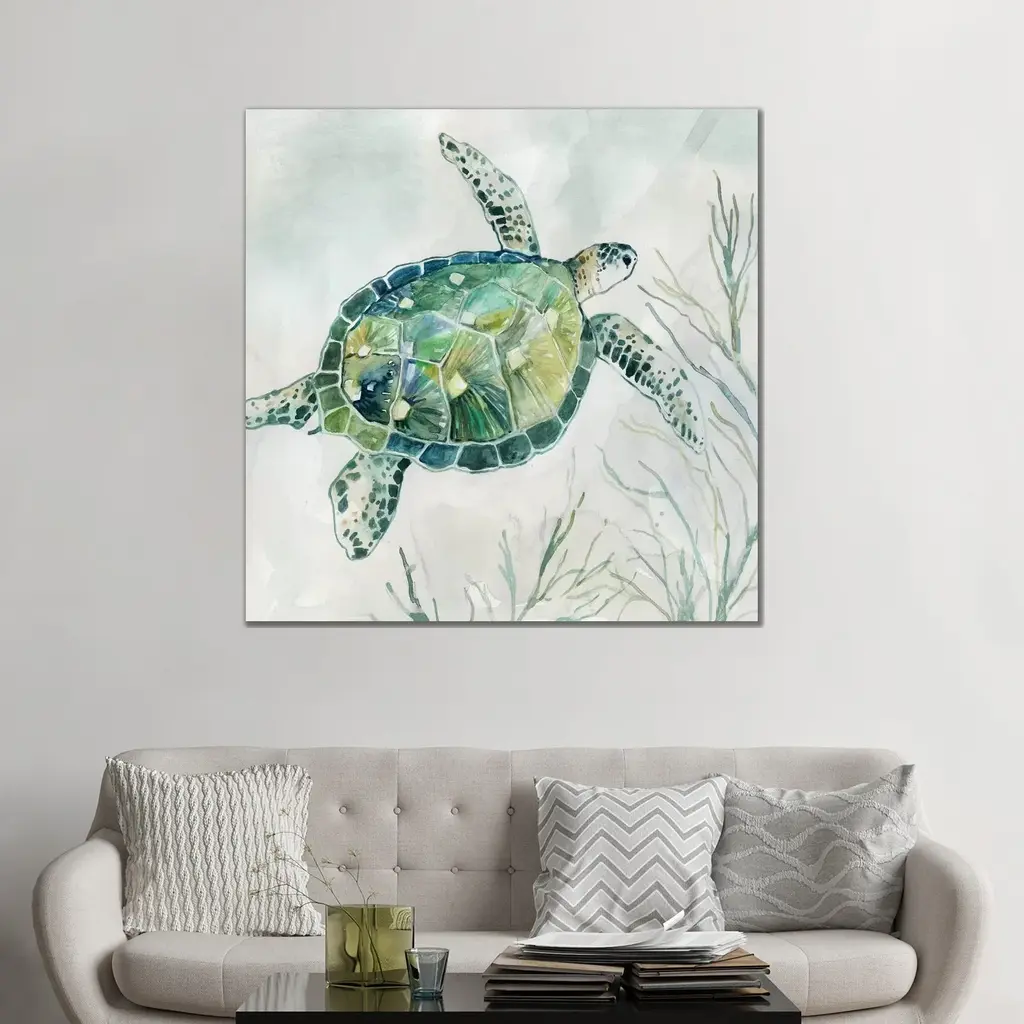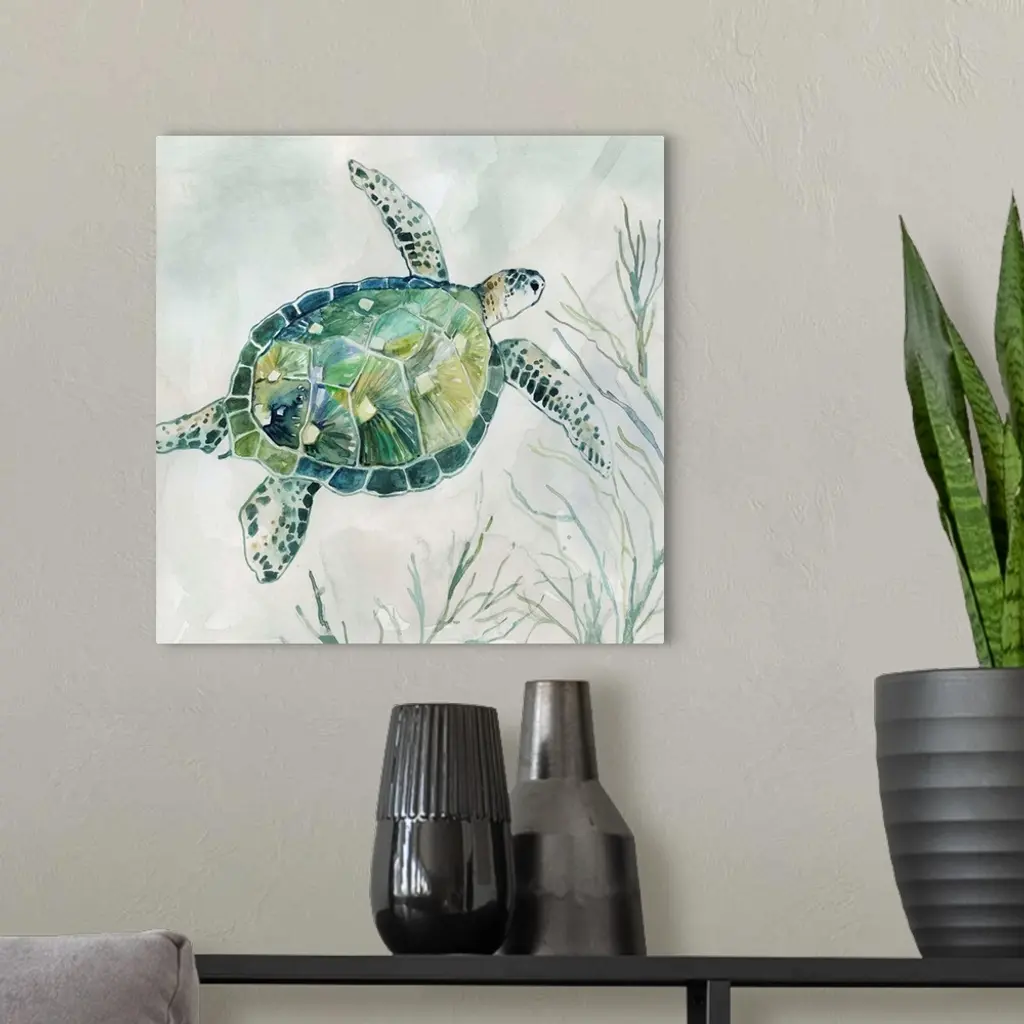 Seaglass Turtle I wall art for home and office decor. Discover canvas art prints, photos, mural, big canvas art and framed wall art in GreatBigCanvas.com's varied collections.