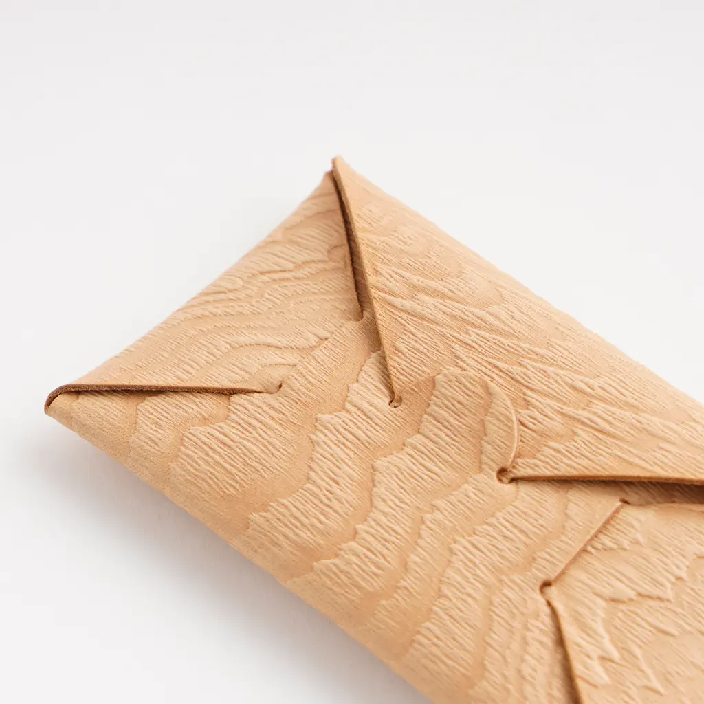 Crafted by hand from leather yet boasting the textures of wood, this Seamless Card Case offers the best of both worlds. Perfect as a gift for anyone who appreciates the quality of handmade products and natural materials, this compact card case is as exceptionally durable as it is beautiful. The fine-grained leather features an embossed wood grain texture, with no two cases quite the same. Plus, with use, the leather will gain unique marks, a subtle luster and a softer feel, to become even more gorgeous. Every Seamless Card Case, Wood is carefully cut, folded, and finished by hand with no seams or stitching. The interior is also spacious, as it can hold about 10 credit cards, 20 business cards, or paper bills and coins. Comes in a lovely i ro se paper box, ready to present as a thoughtful gift.