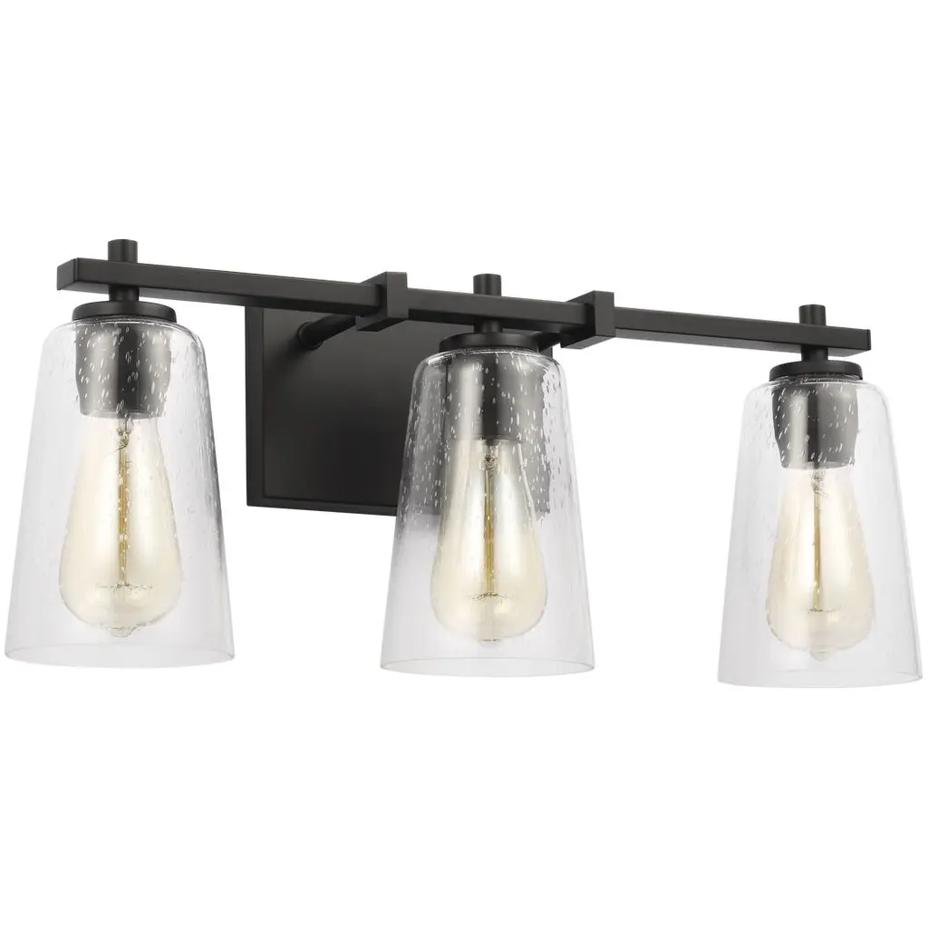 Modern details, like the clean square supports of the cross arm and sleek, rectangular backplate, are defining features of the Mercer. Available in five modern finishes and thickened seeded glass shades, this Mercer vanity lights create a delicately gorgeous effect by illuminating your space with a subtle glow.