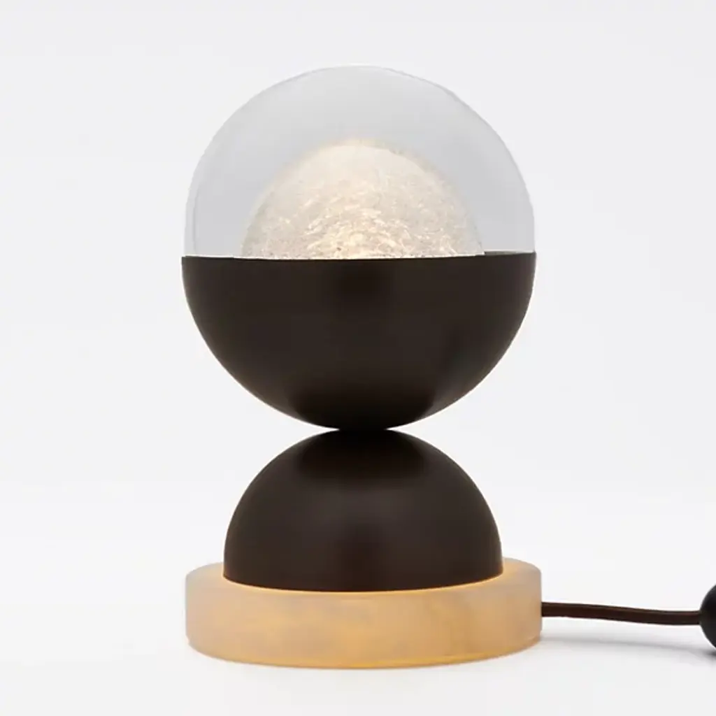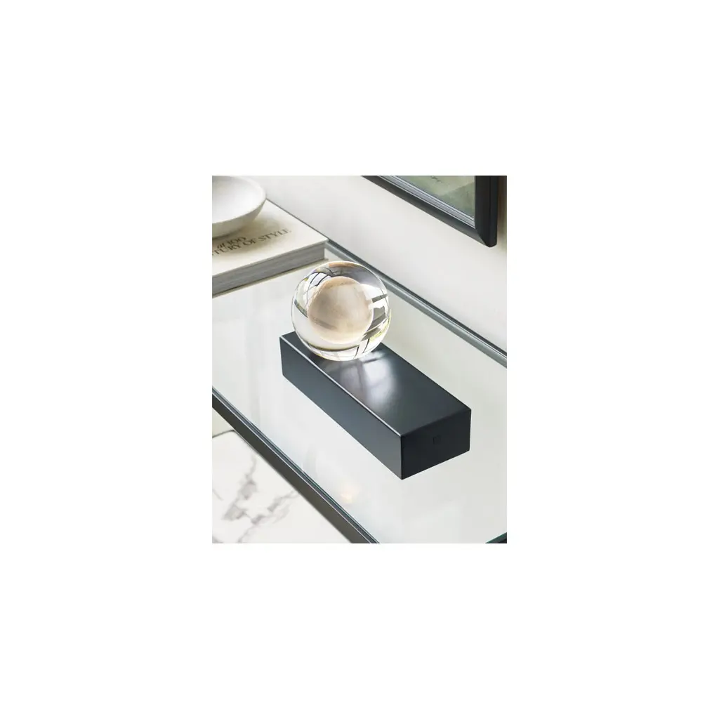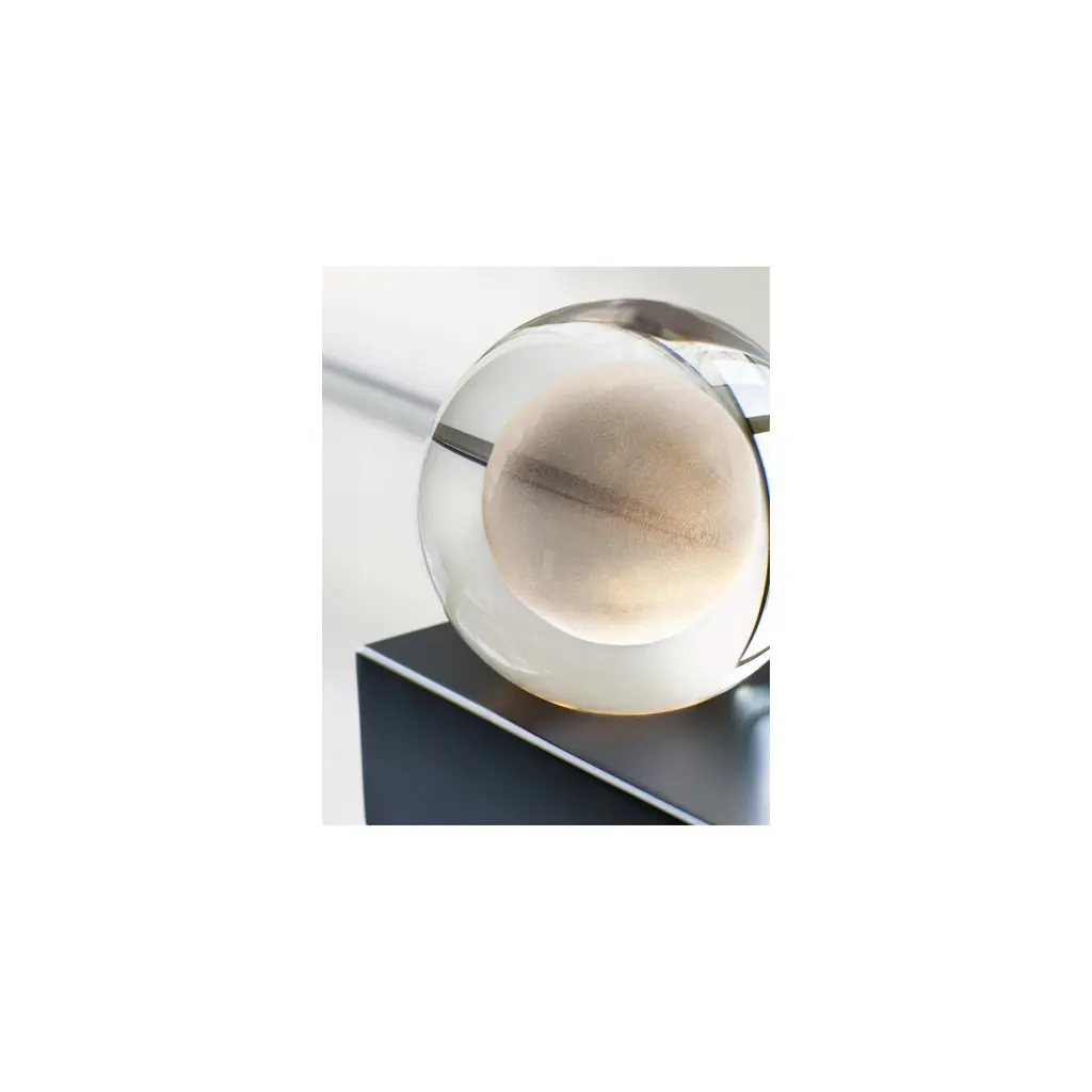 The Mina Table Lamp by Sean Lavin features an elegant sphere of pure optic crystal elegantly resting on a metal or marble base. This beautiful orb is laser-etched and further illuminated by a powerful firing hidden LED making this a glowing work of art when illuminated and modern d?cor when unilluminated. Available in modern finishes. Designed with an integrated 3-step touch dimmer conveniently designed to achieve your desired ambiance. Complete the look with coordinating Mina Wall Sconce and Line-Voltage Pendants.