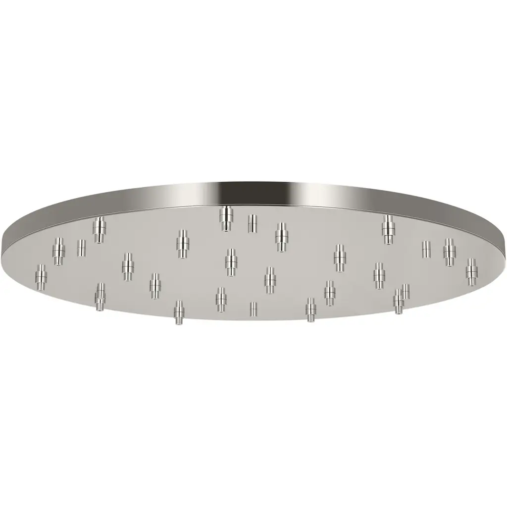 Craft a unique and custom-made chandelier using the Line-Voltage 47" Round Canopy Port by Visual Comfort. A one-of-a-kind chandelier is as easy as 1-2-3 select your pendants, then select the finish that suits your space, and lastly, install. Available in modern finish options. This canopy mounts to a standard 4 in. junction box with round plaster ring (provided by electrician).