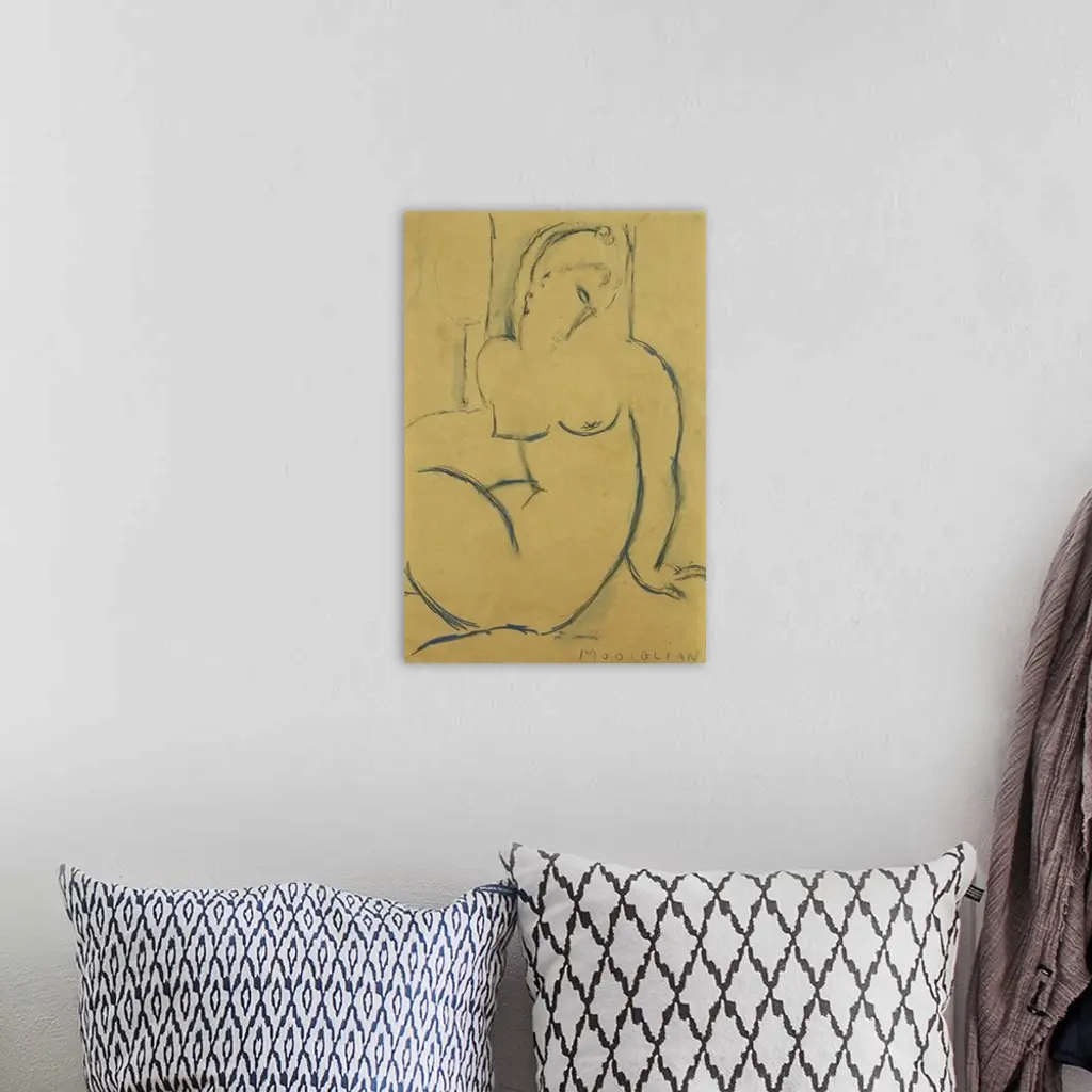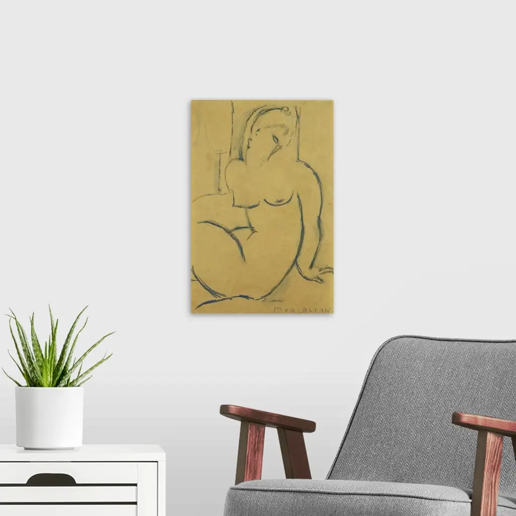 CH378366 Seated Woman, 1914 (blue coloured pencil & pencil on brown paper) by Modigliani, Amedeo (1884-1920); 35.5x22.3 cm; Private Collection; (add.info.: Femme Assise;); Photo .... Christie's Images; Italian, out of copyright