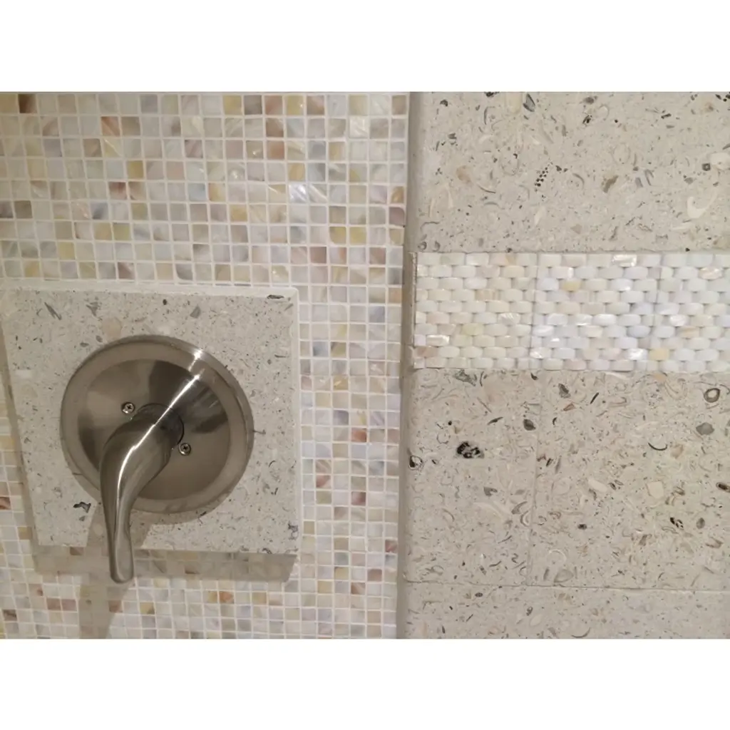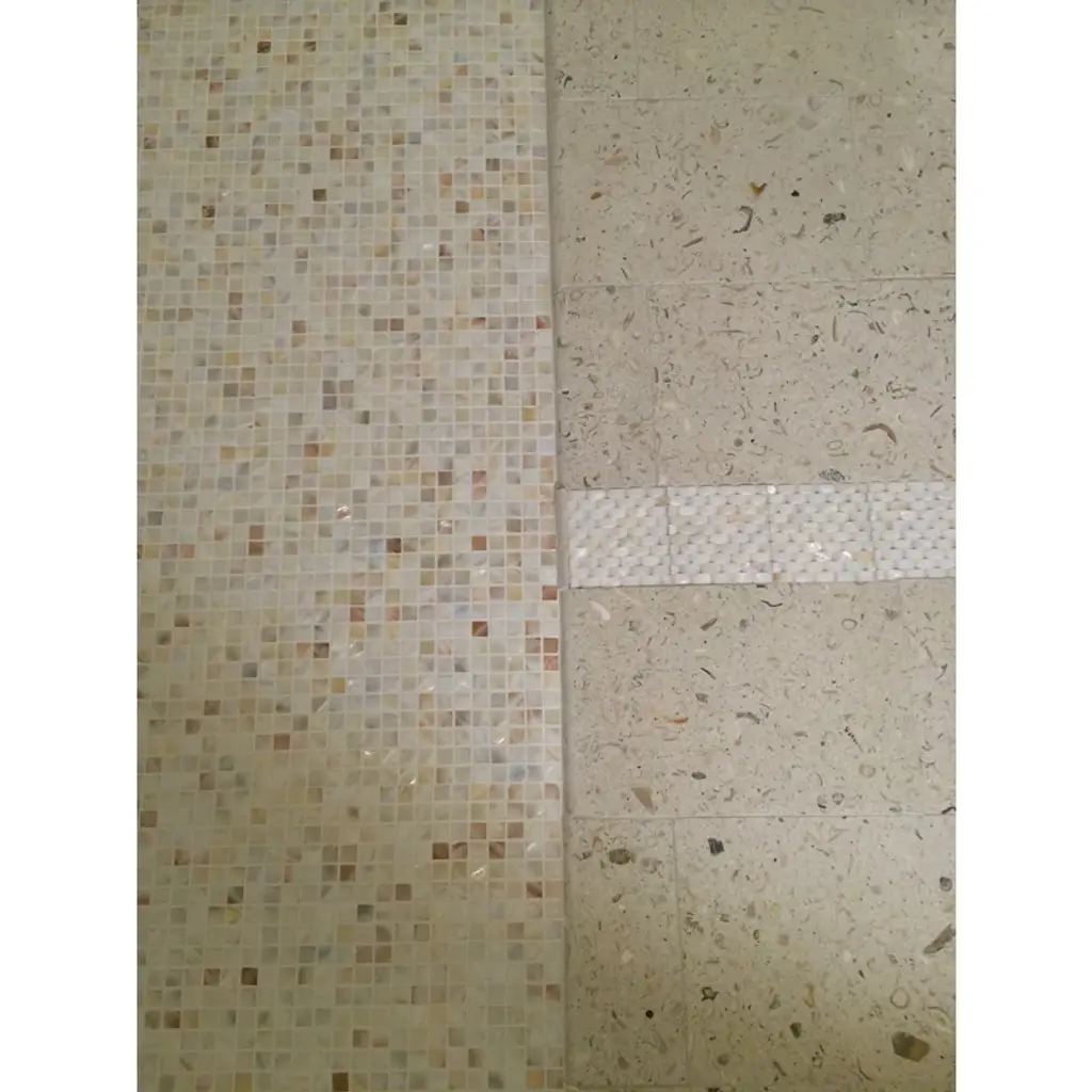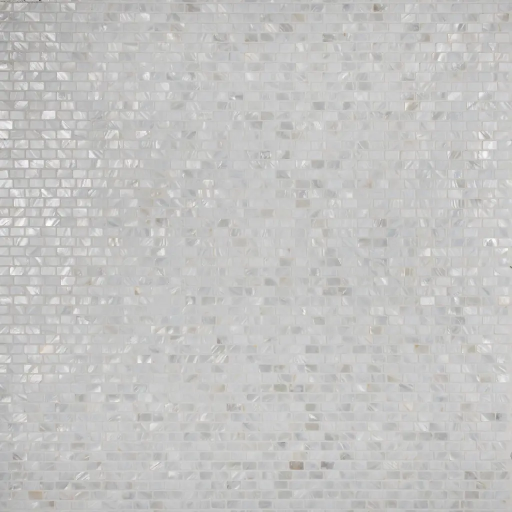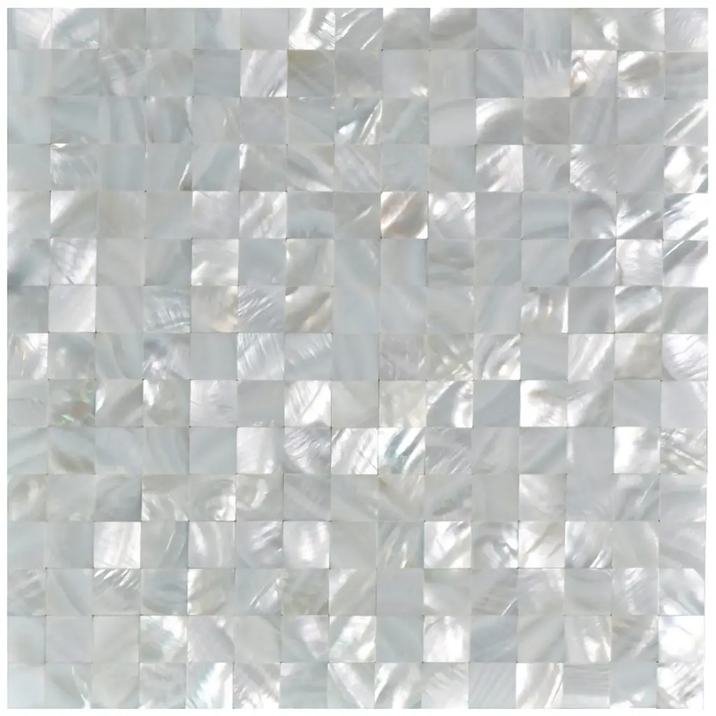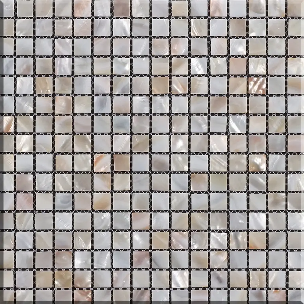 Genuinely polished shell mosaic tiles are buff polished and back-mounted on mesh backing in standard-size tiles. The natural shell mosaic is factory applied to the mesh in various mosaic sizes. These tile pieces capture the beauty of the natural mother of pearl in a mosaic form, ready to place on a vertical surface or to enhance a stunning surface such as furniture. Back mesh webbing is designed to easily cut to own requirements such as a simple design, and strips.