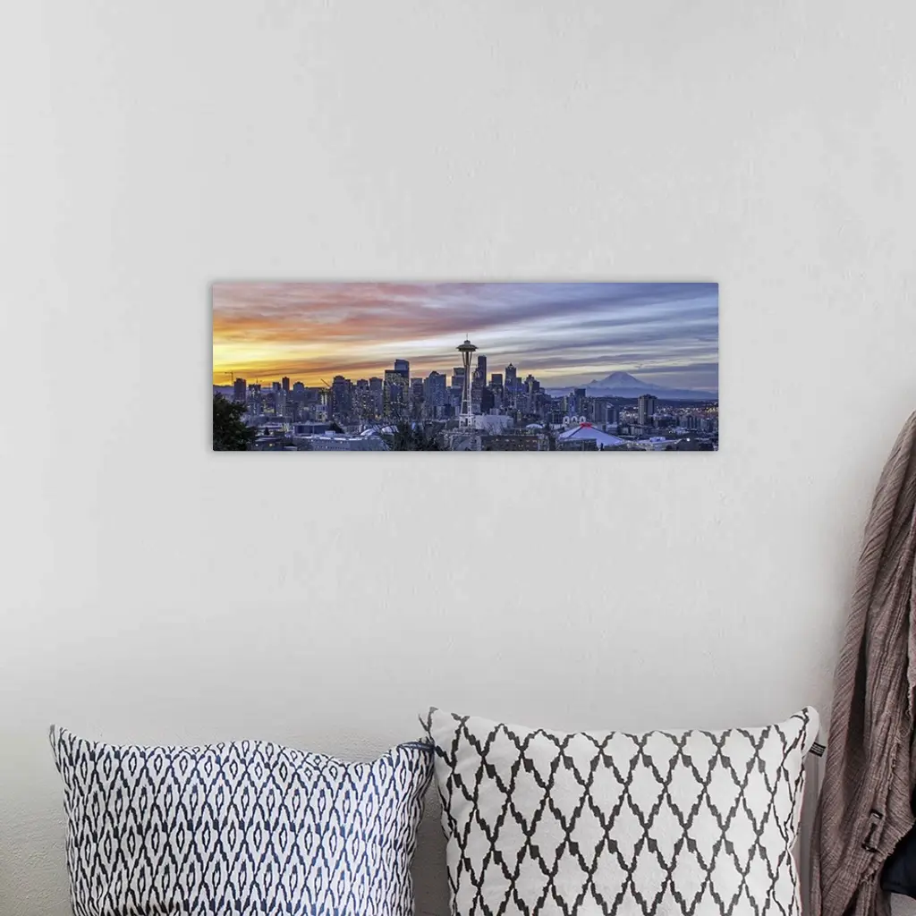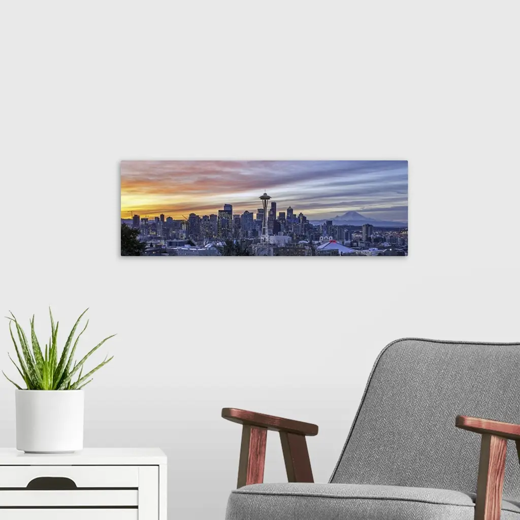 Seattle Skyline And Mt Rainier As Seen From Kerry Park At Sunrise