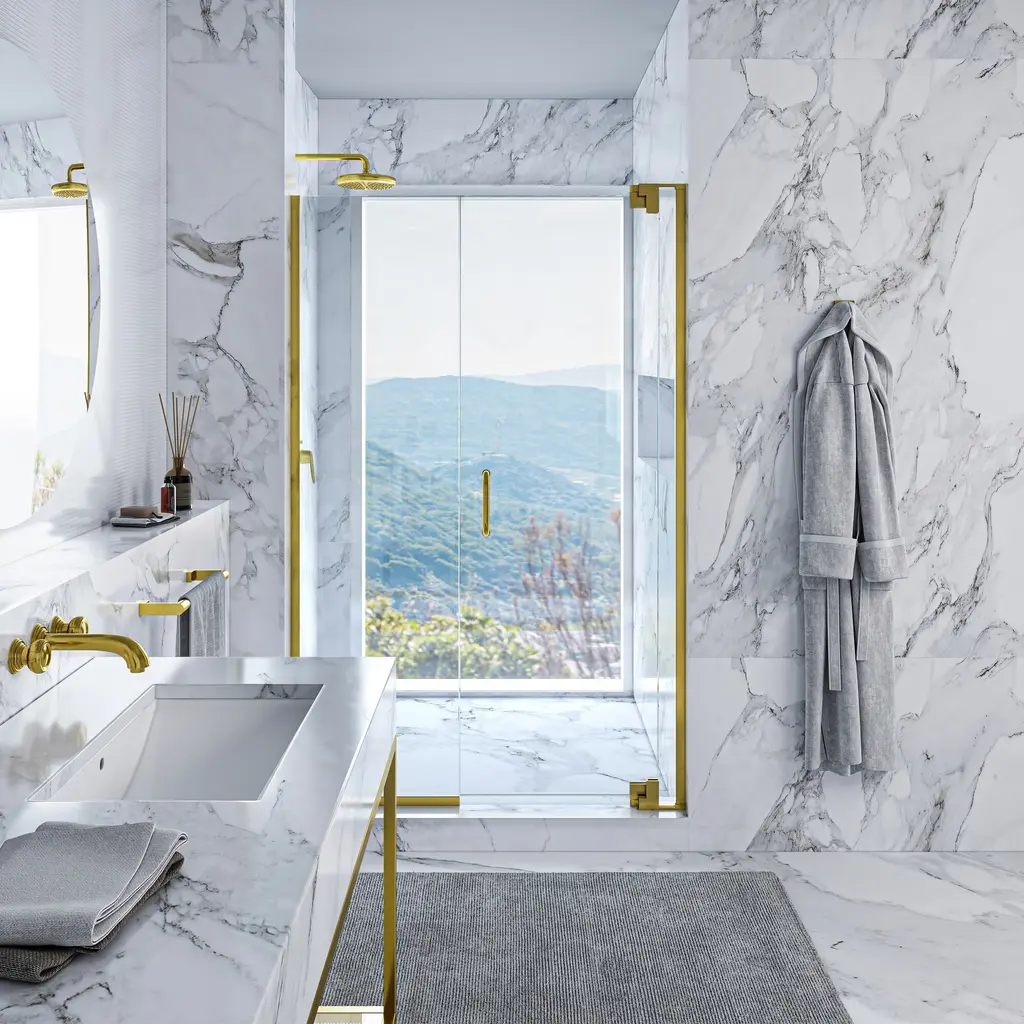 Seawin Flex X Duo 42 - 45 X 72 In. Frameless Pivot Shower Door 3/8 In. (10 Mm) And 5/16 In. (8 Mm) Glass With Nanoshield Coating - Satin Gold