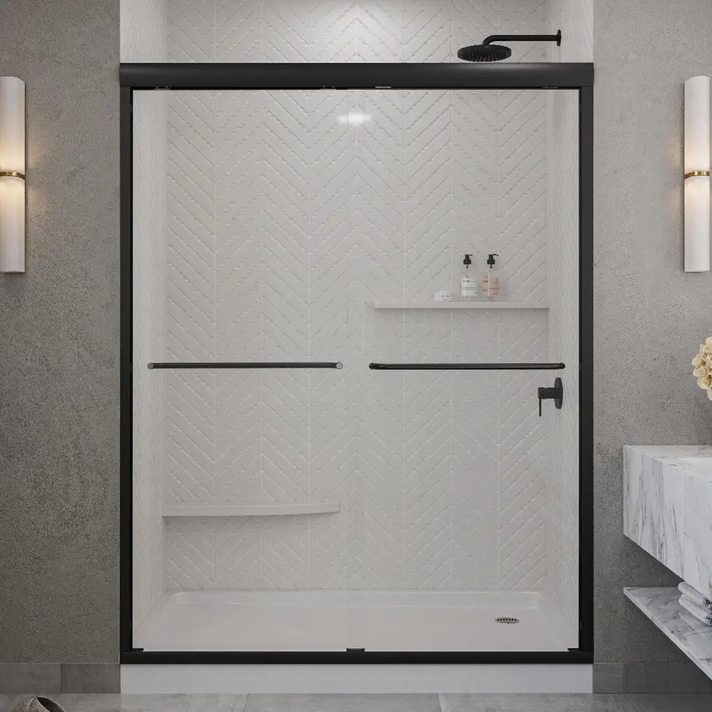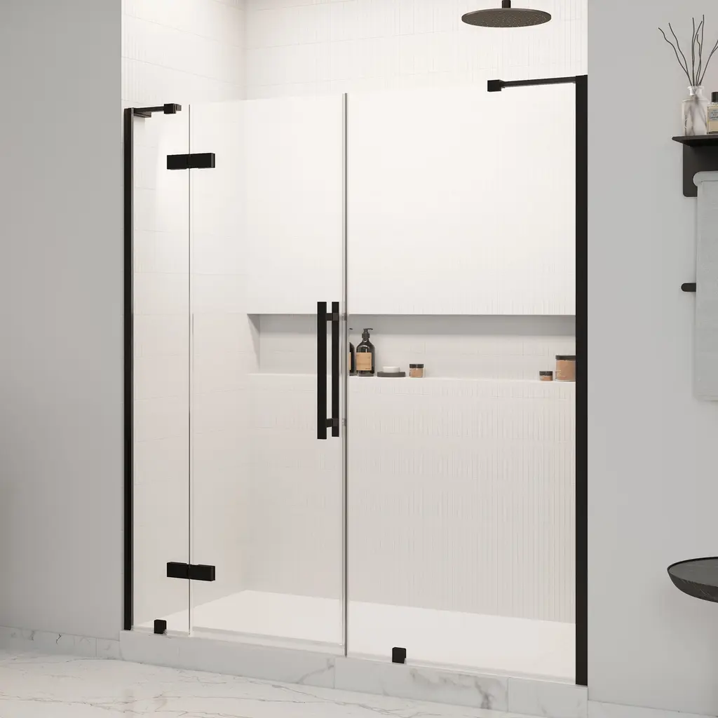 The Seawin Strada series as a simple, frameless shower door solution specifically designed to bring you a classic style, along with a nice touch of elegance. Featuring a pair of shower doors that glide effortlessly and graciously along a beautiful, anodized aluminum track. From there, you can choose from a variety of hardware finishes.