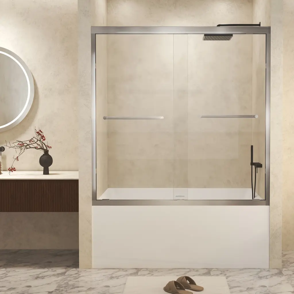 The Seawin Strada series as a simple, frameless shower door solution specifically designed to bring you a classic style, along with a nice touch of elegance. Featuring a pair of shower doors that glide effortlessly and graciously along a beautiful, anodized aluminum track. From there, you can choose from a variety of hardware finishes.