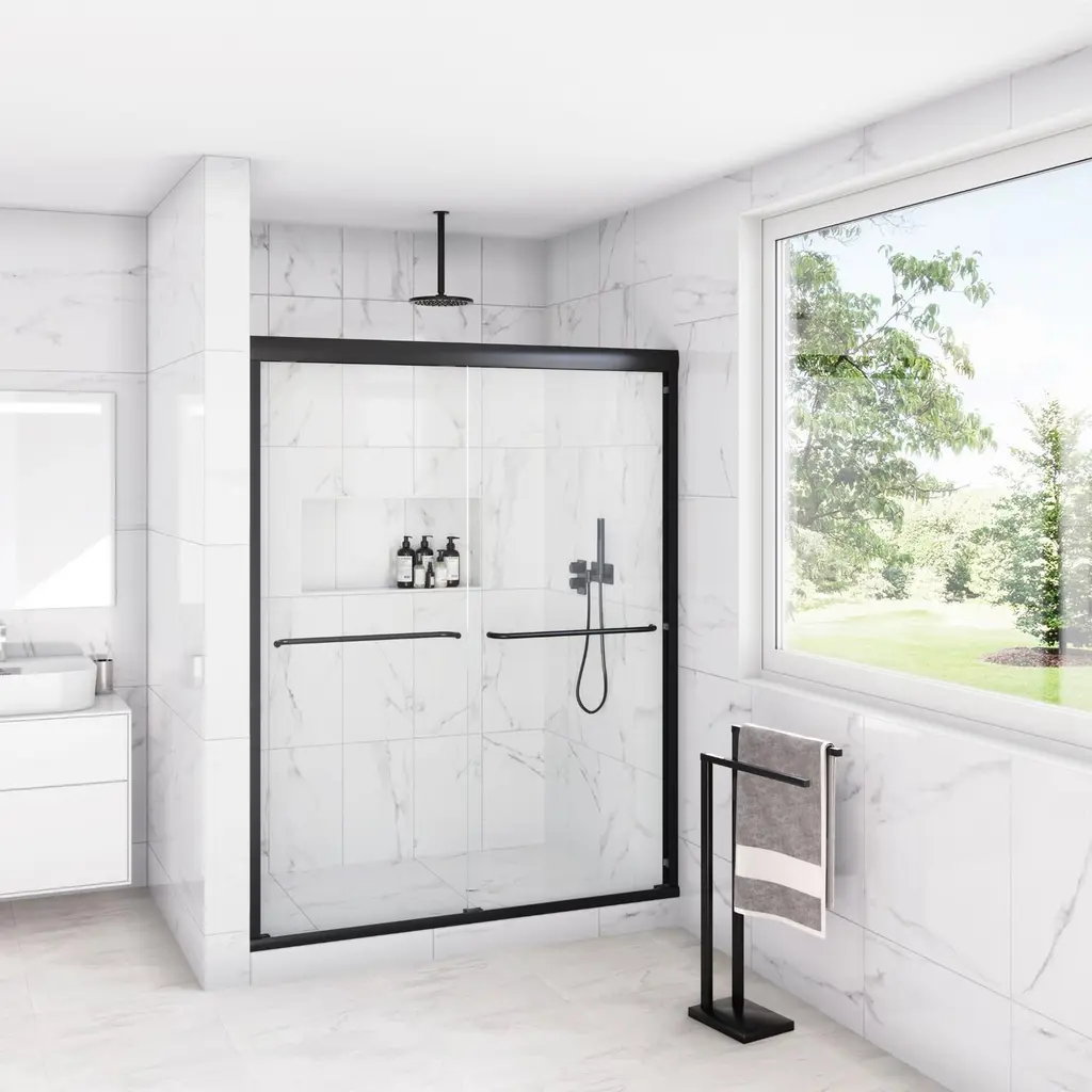 Seawin Strada 56 - 60 X 76 In. Frameless Bypass Sliding Shower Door 3/8 In. (10 Mm) Clear Tempered Glass With Nanoshield Coating - Matte Black