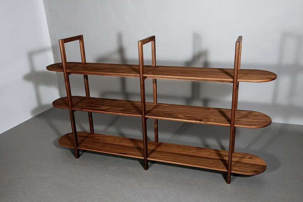As shown:Solid walnutOil and wax finishDimensions: 75” L x 13” D x 42.75” HCustom sizing and configurations are availableOffered in a variety of hardwoods and finishes.