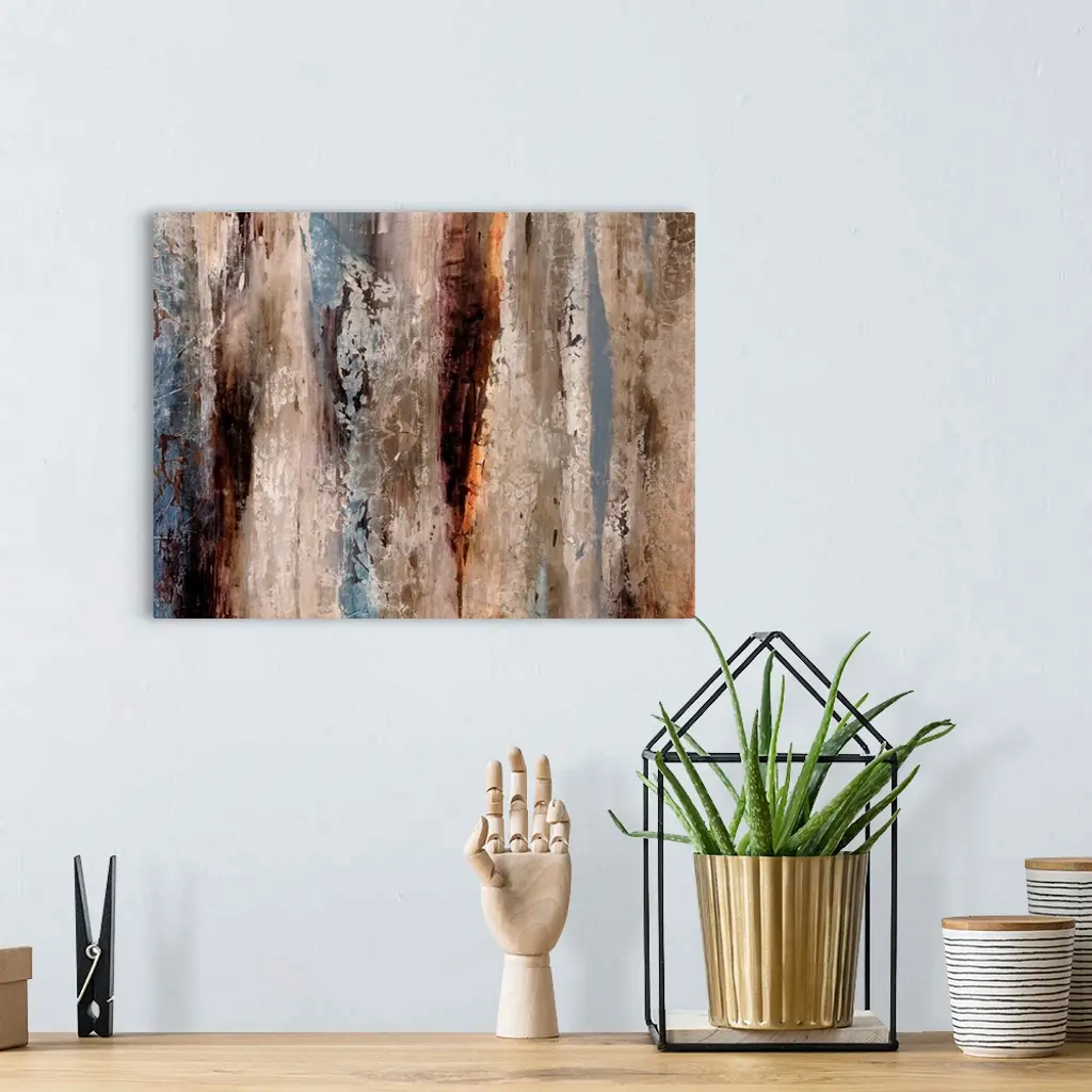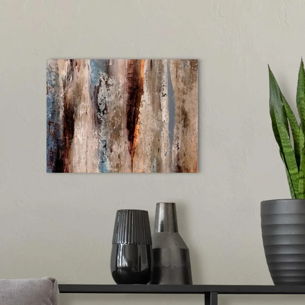 Big abstract art uses lots of jagged vertical lines to give this piece added texture and complexity.