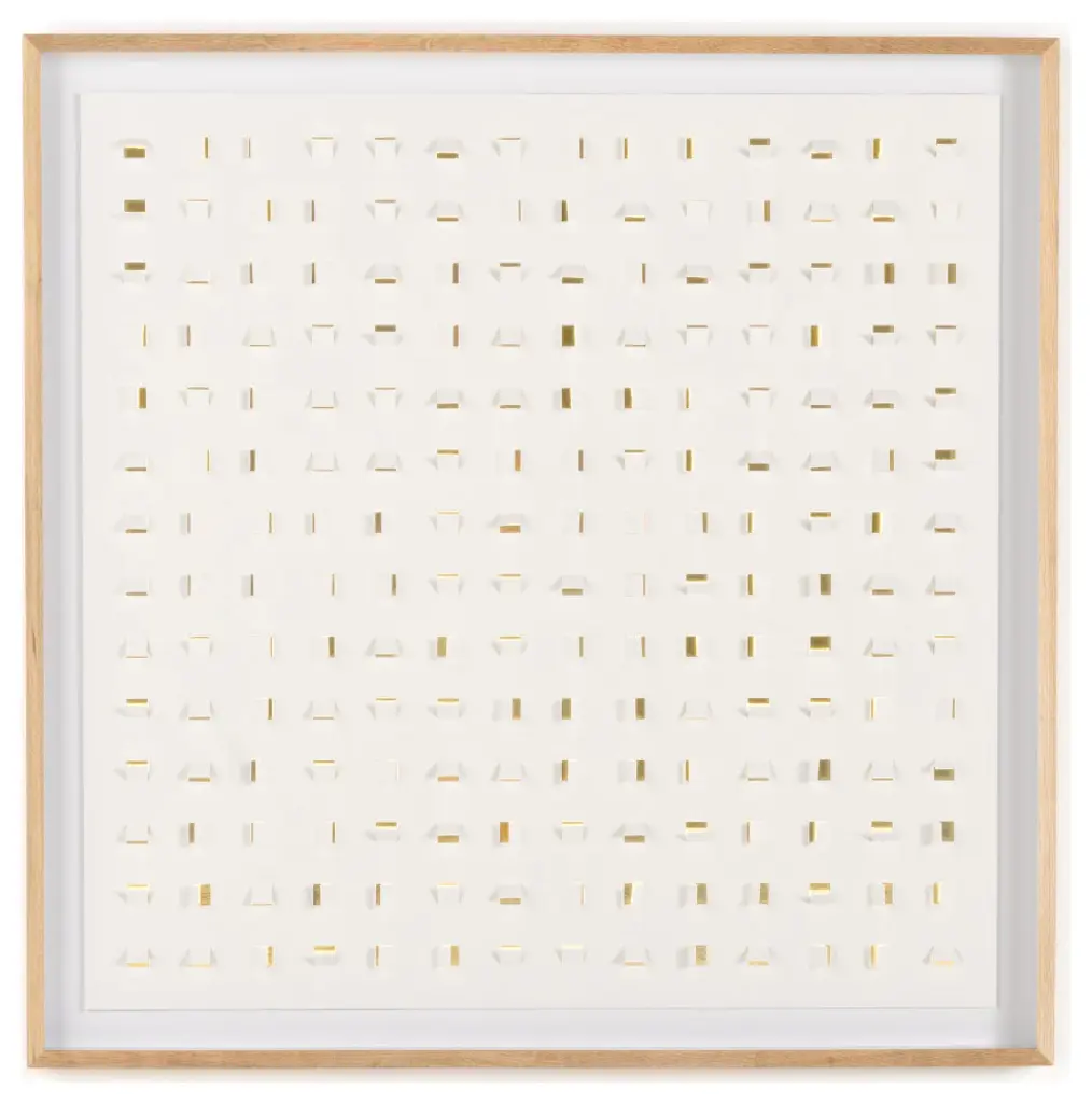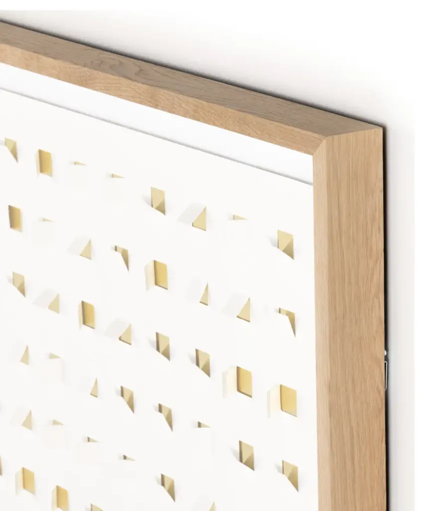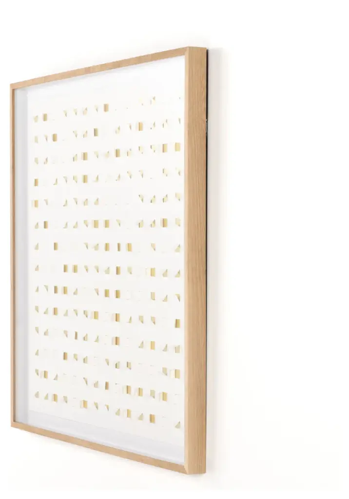 Paper cutouts add layers of color and texture to this piece and any space. Framed in vertical grain white oak for a museum-quality look. Designed by Four Hands Art Studio and handmade in Austin, Texas.