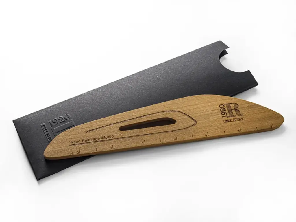Segnalibro is a ruler in ancient Kauri wood, inspired to an aerodynamic design, it has two scales: centimeters and inches.N.B.: BAG INCLUDEDAVAILABLE FINISHES:A10: kauri