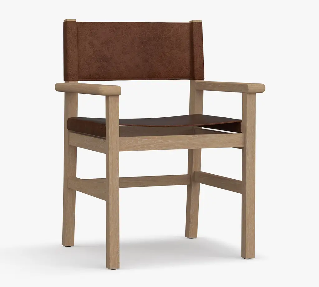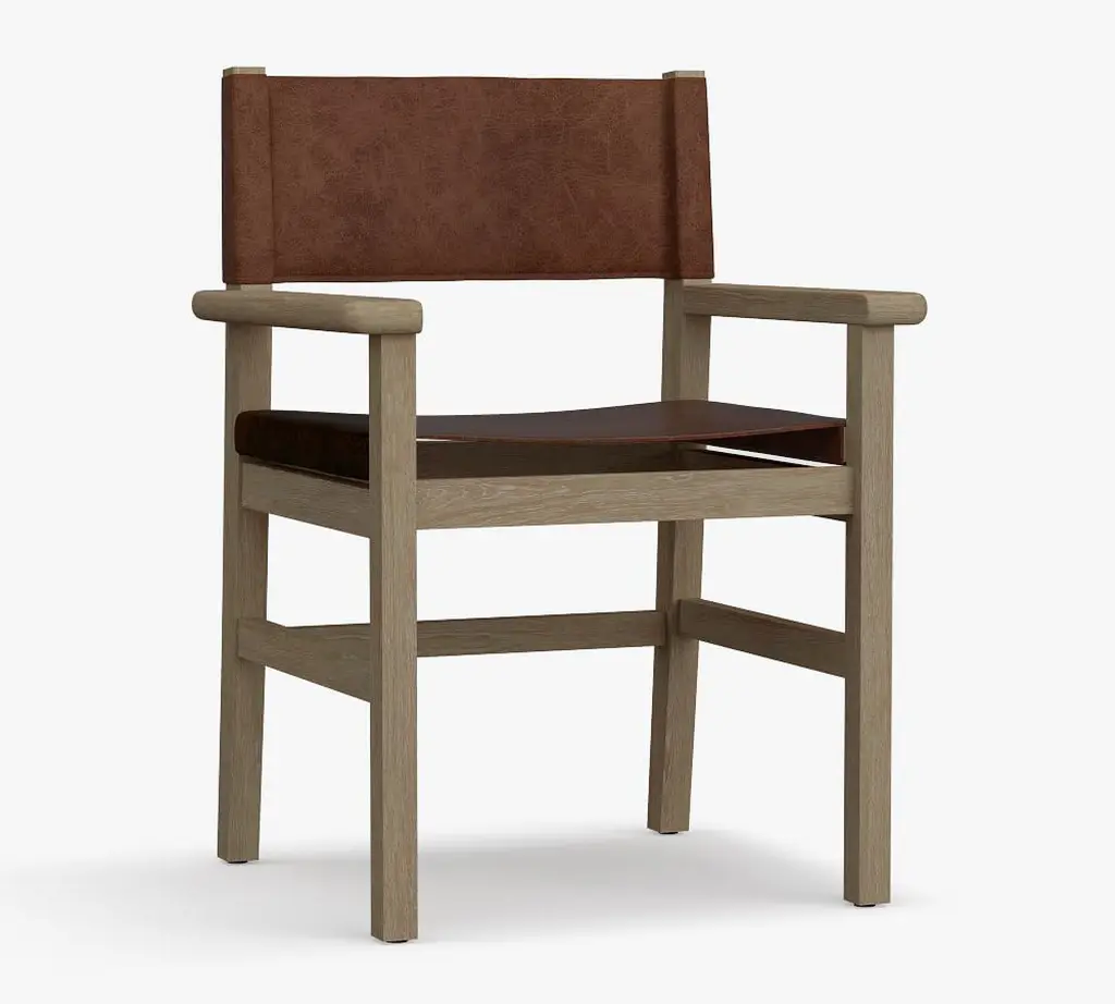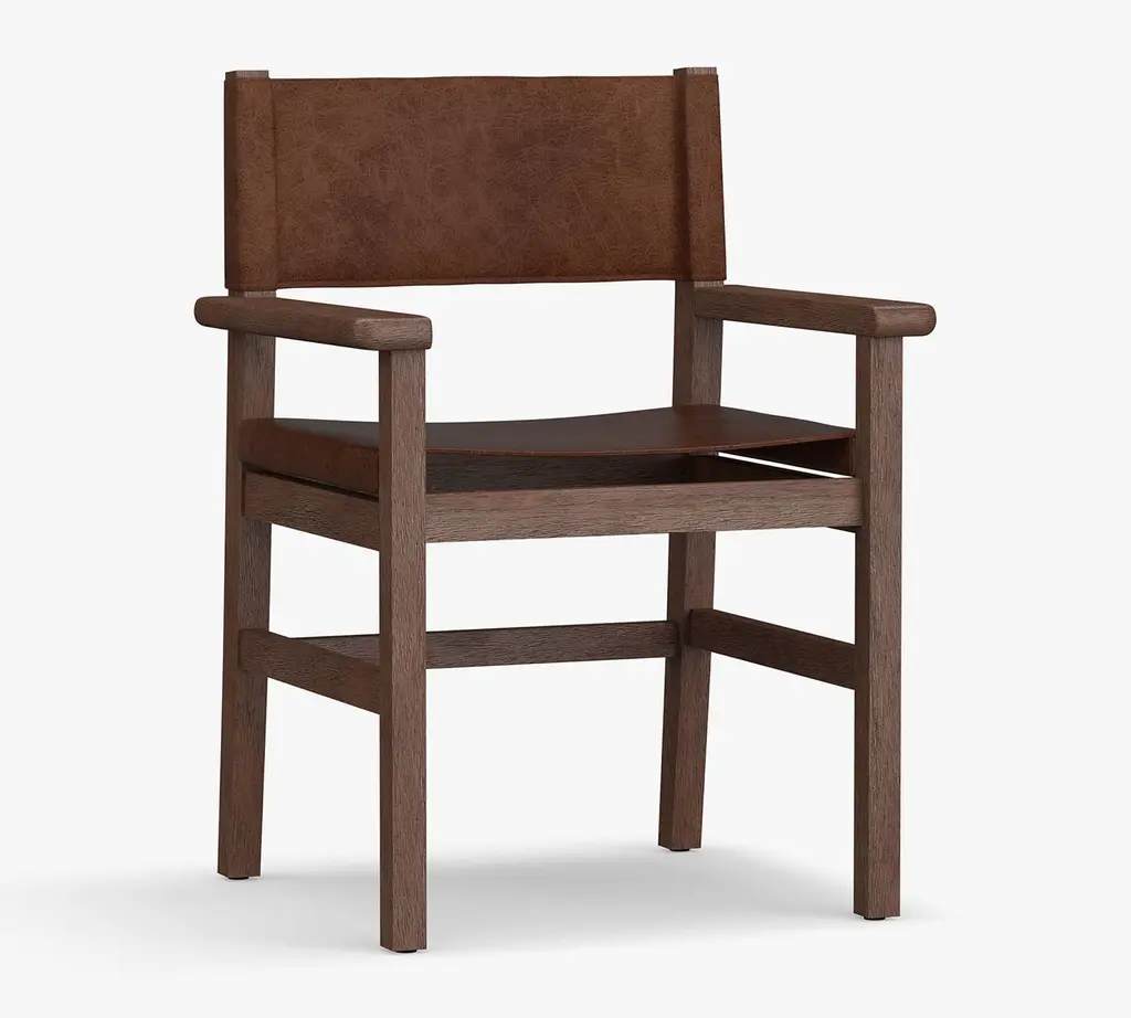 A warm mix of handsome leather hide and fine acacia wood, the Segura Leather Dining Chair is a modern take on Craftsman-style furniture. This sturdy chair’s sling-style back and seat are securely fitted to the frame for incredible longevity and enduring style. Available in all of our top-quality leathers, you can match it to your space.