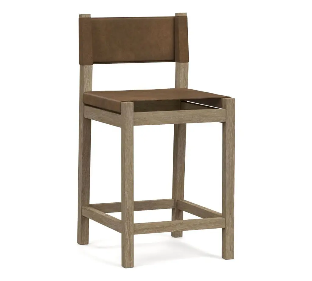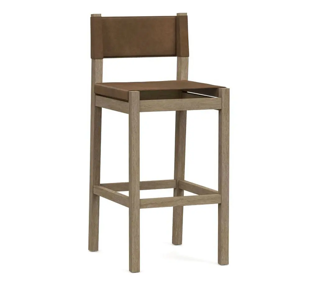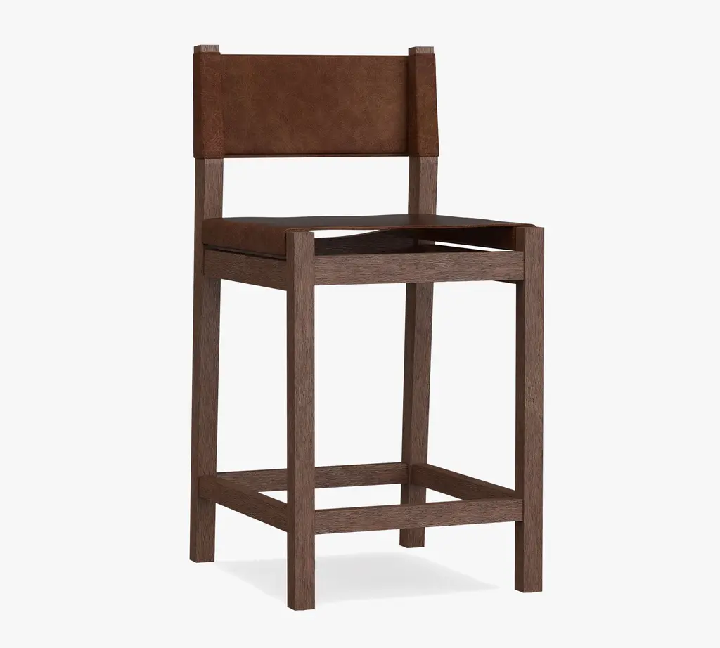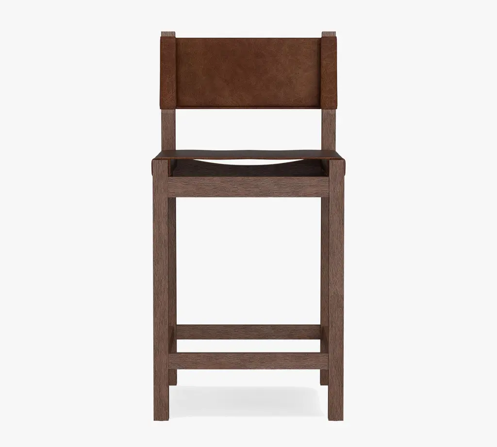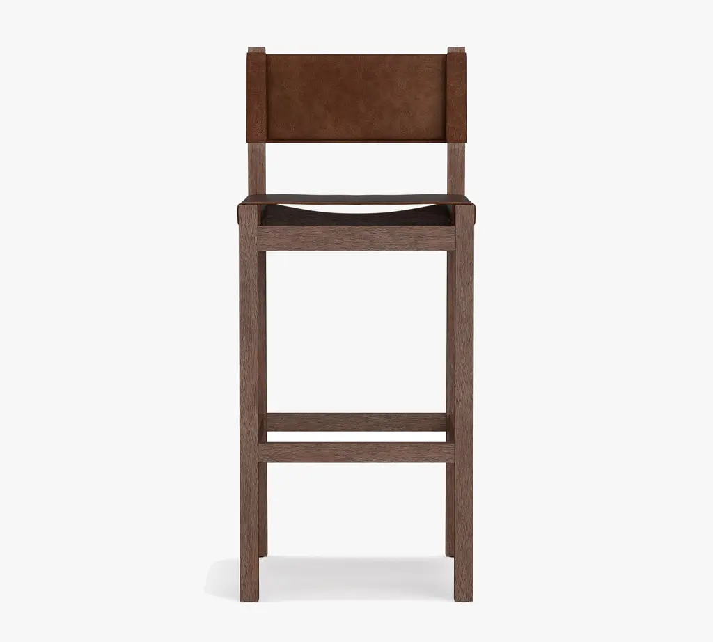 A warm mix of handsome leather hide and fine acacia wood, the Segura Leather Dining Bar & Counter Stools are a modern take on Craftsman-style furniture. This sturdy stools' sling-style back and seat are securely fitted to the frame for incredible longevity and enduring style. Available in all of our top-quality leathers, you can match it to your space.