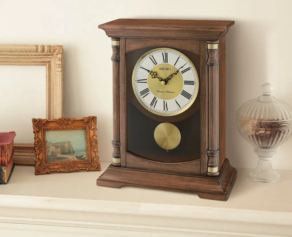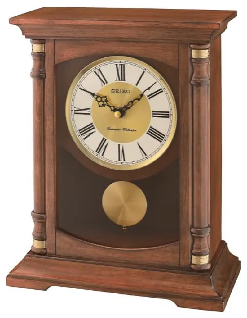 Seiko Clocks, Charming Medium Brown Clock With Pendulum And Chime