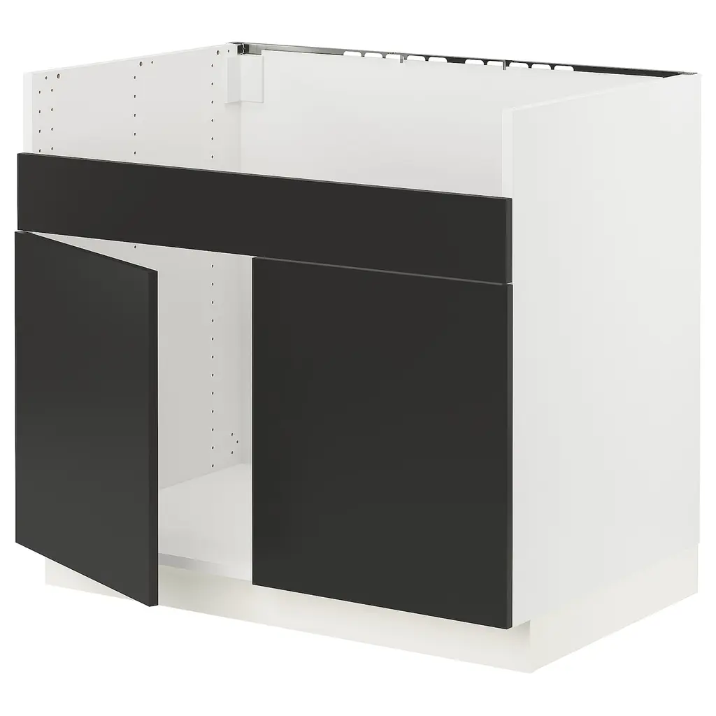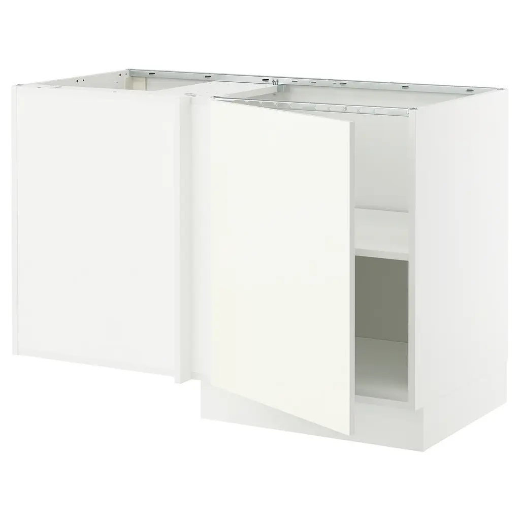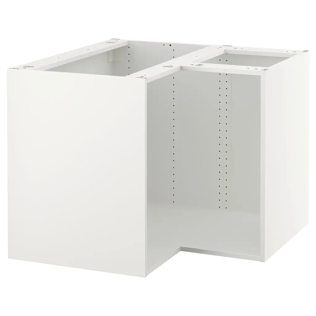 SEKTION Base corner cabinet frame - white 50x24x30 ". This cabinet makes good use of corner spaces with plenty of room for larger pots, pans and small appliances. Allows installation of a inset sink (max 23⅝"). Allows installation of a top drawer, medium or low. Sturdy frame construction, ¾" thick.