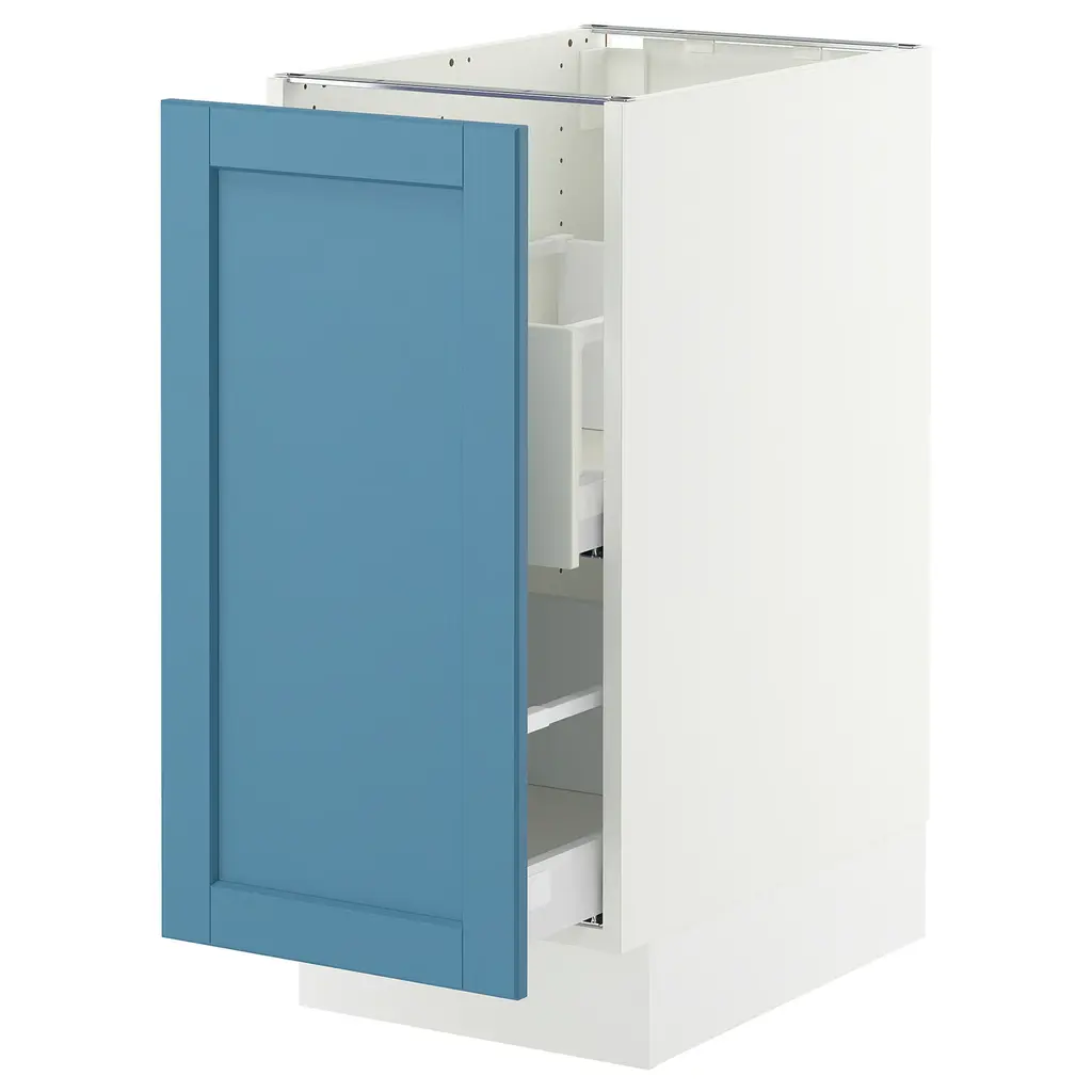 SEKTION / MAXIMERA Base cab f recycling/3 fronts - white/Lerhyttan blue 15x24x30 ". MAXIMERA drawer is a smooth-running, full-extension drawer with built-in dampers so that it closes slowly, softly, and quietly. Sturdy frame construction, ¾" thick. Requires a knob or a handle