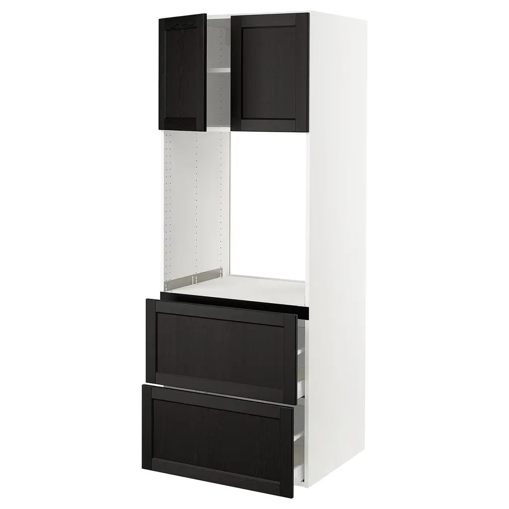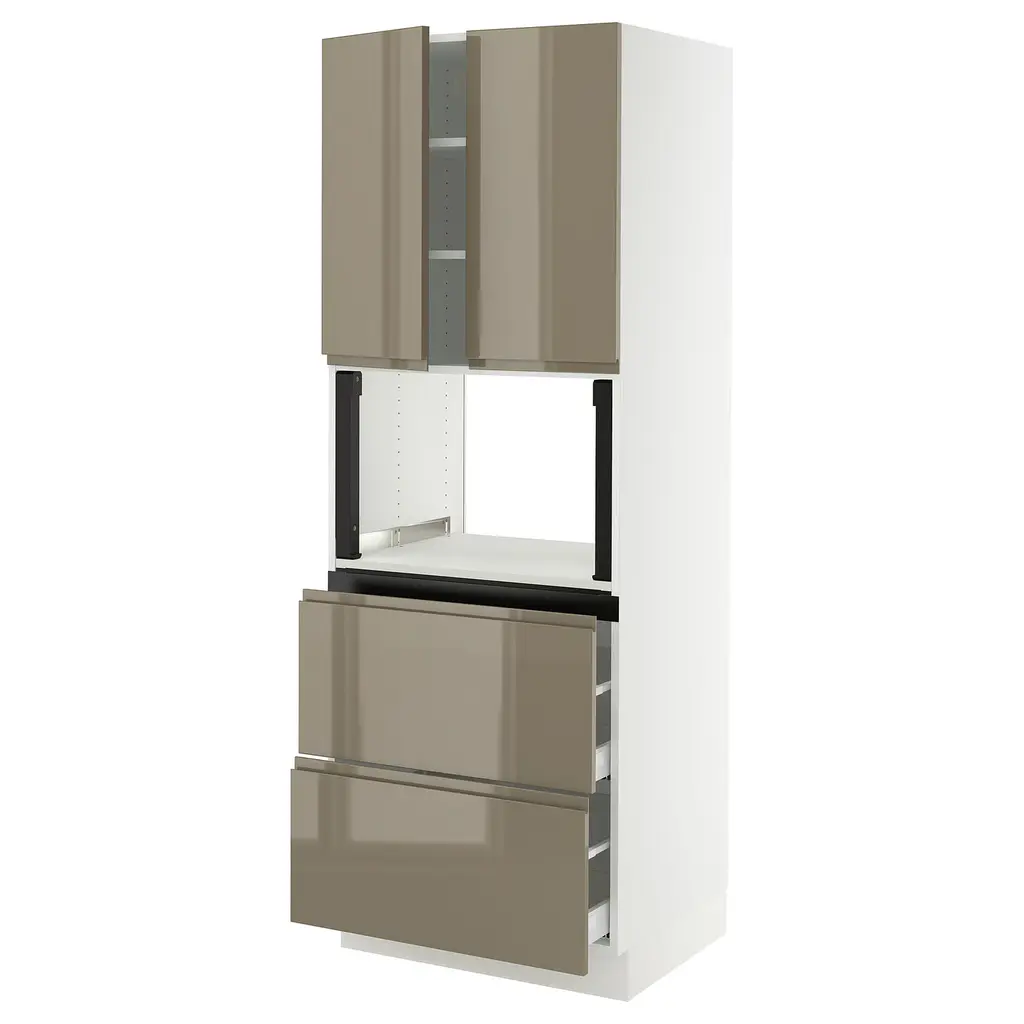 Sektion / Maximera High Cab F Micro/oven+drawer/door - White/voxtorp High-Gloss Dark Grey-Brown 30x24x80 "