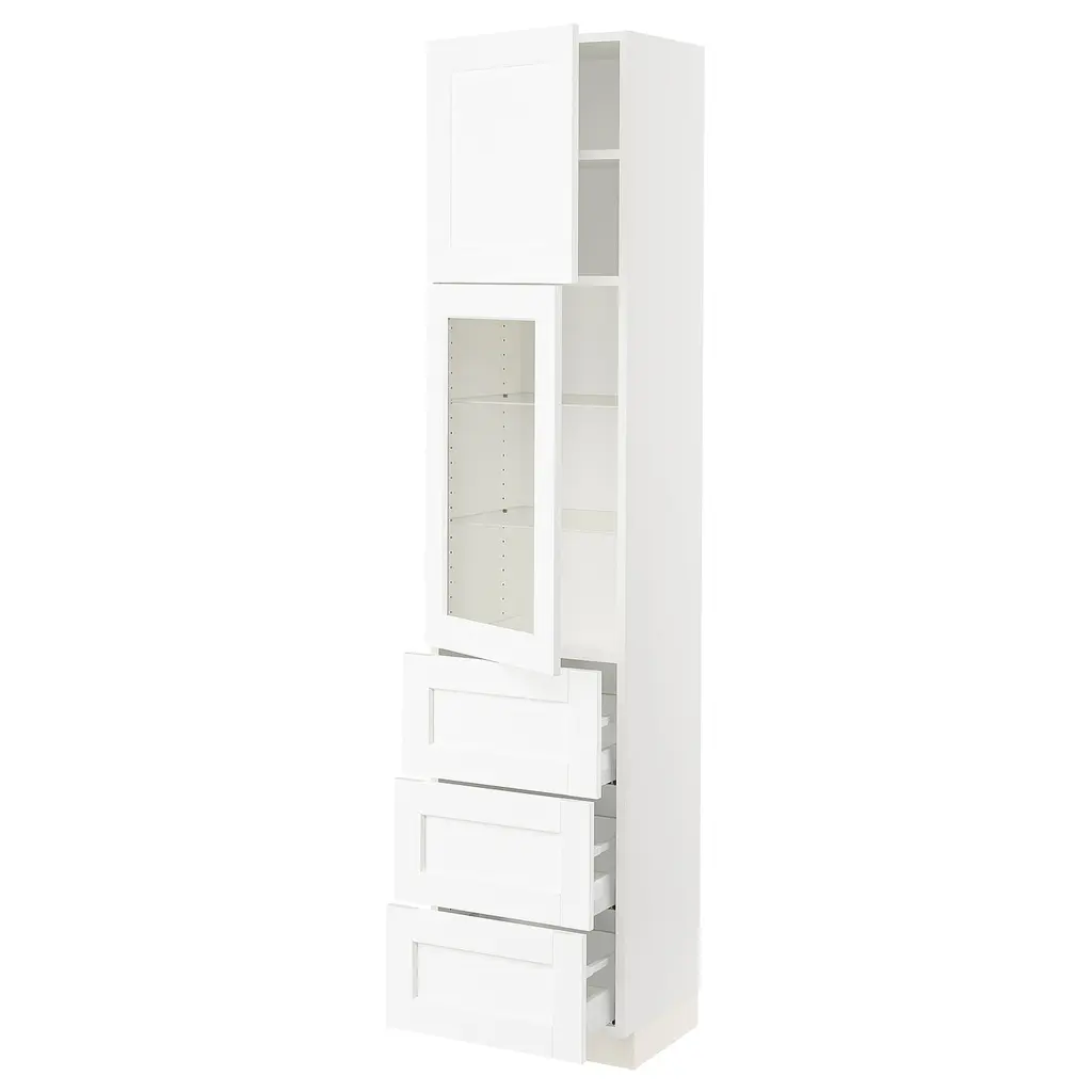 SEKTION / MAXIMERA High cb w 2 glass drs/2 drawers - white/Lerhyttan light gray 18x15x90 ". MAXIMERA drawer is a smooth-running, full-extension drawer with built-in dampers so that it closes slowly, softly, and quietly. The door can be mounted to open to the left or right.