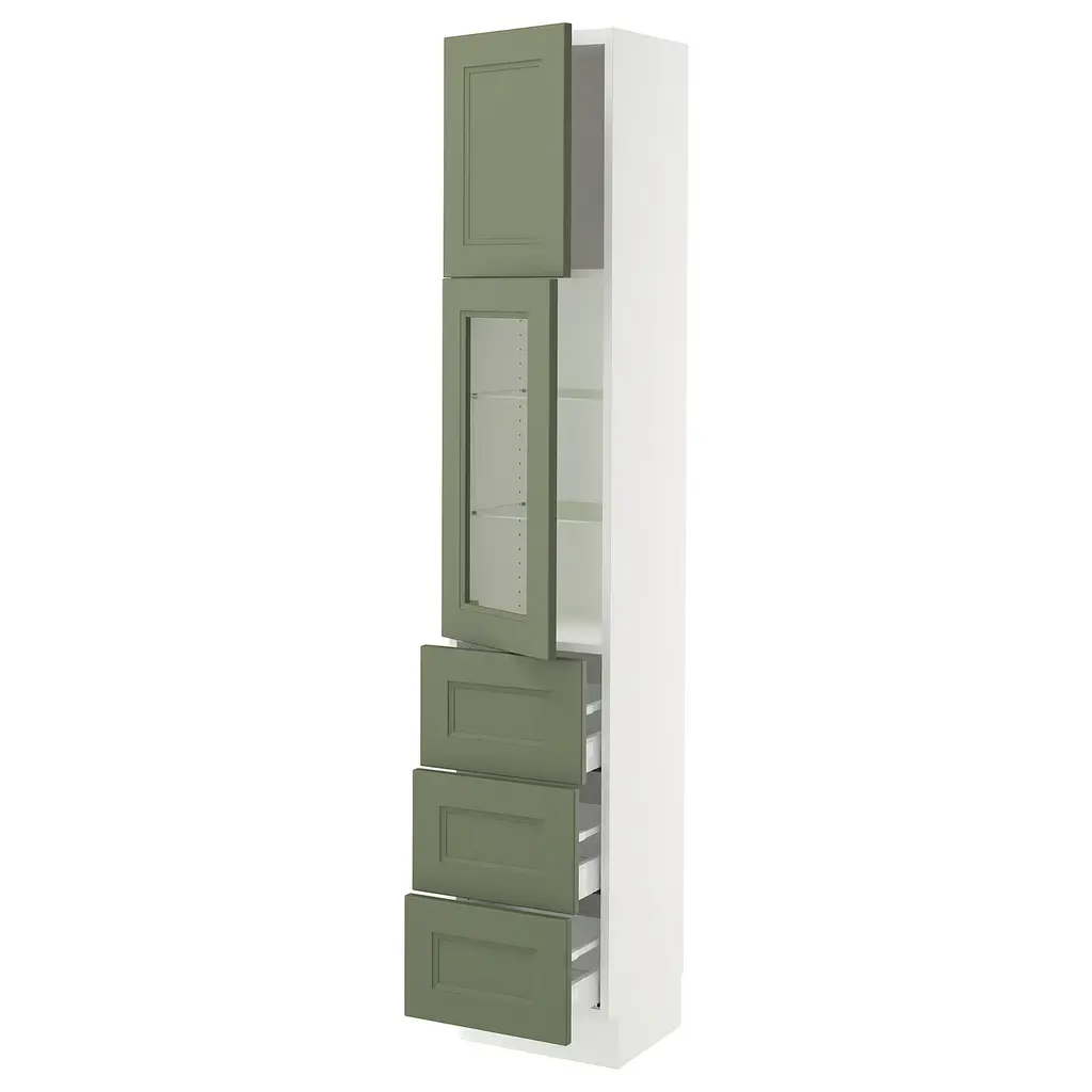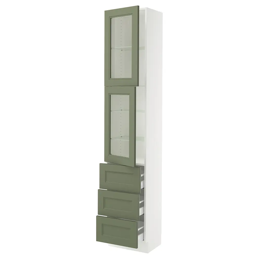 Sektion / Maximera High Cb W 2 Glass Drs/2 Drawers - White/lerhyttan Light Gray 18x15x90 "