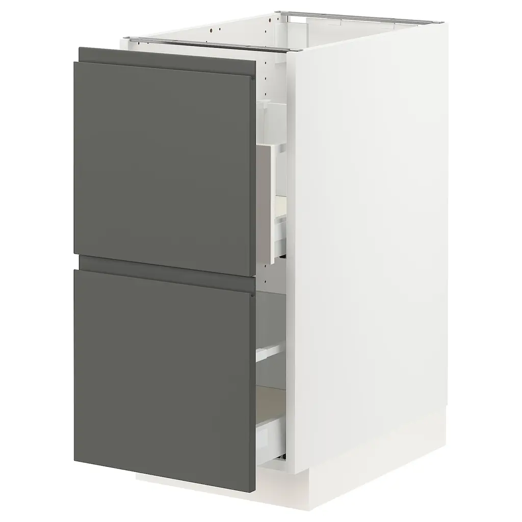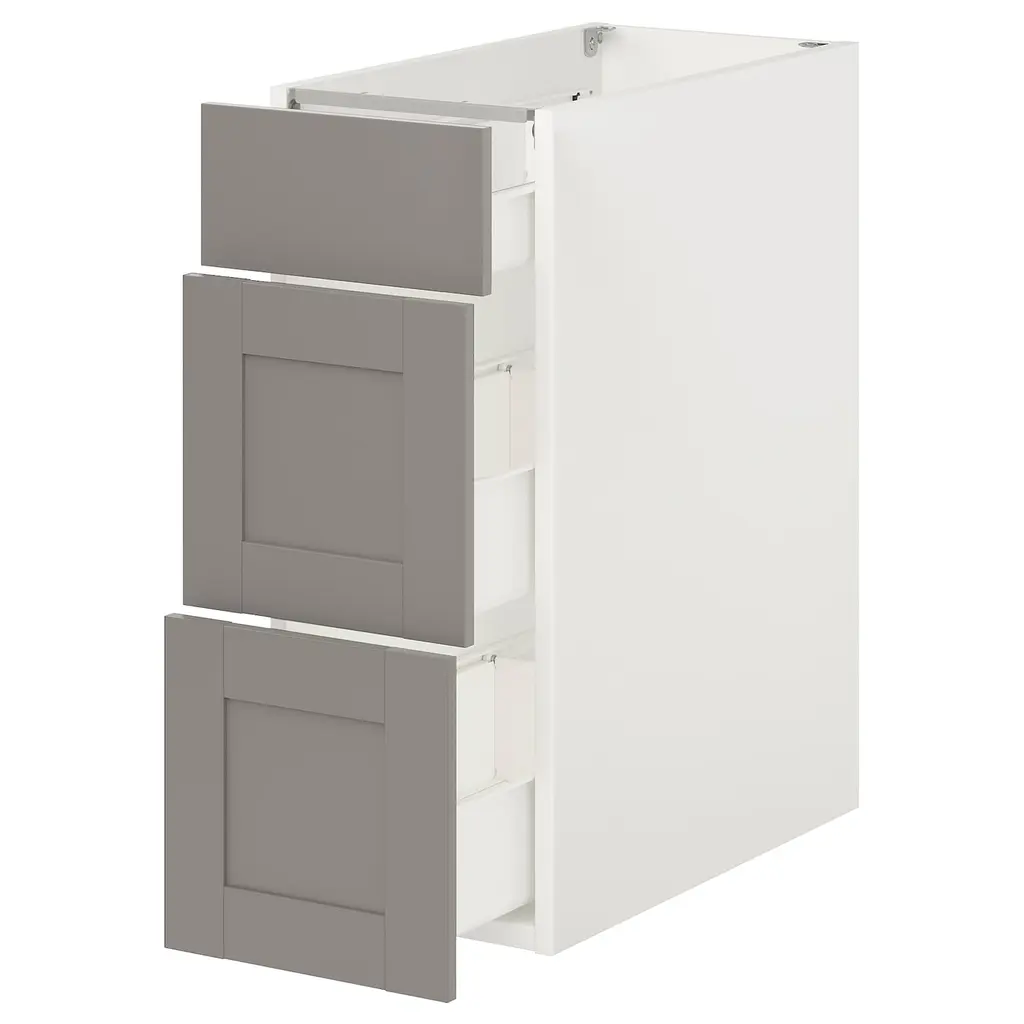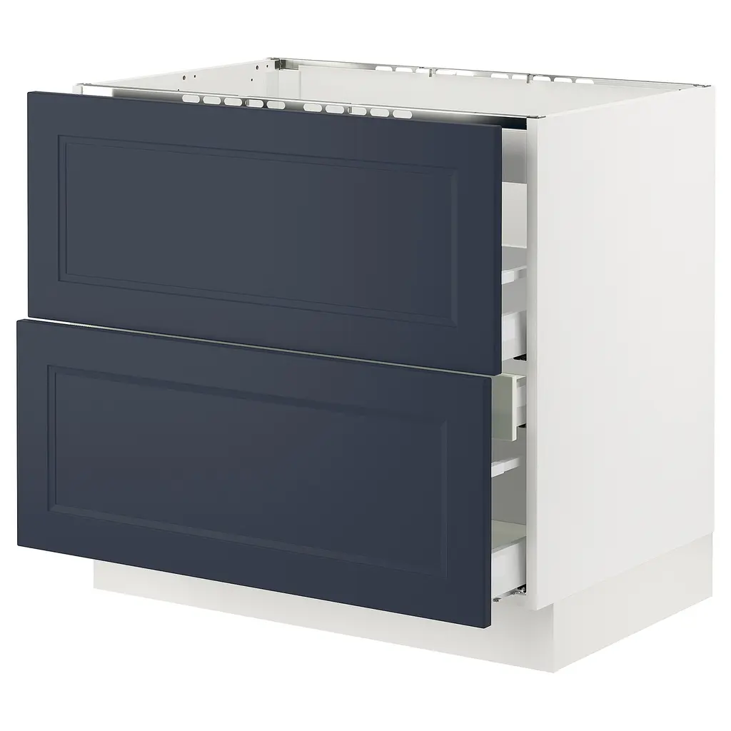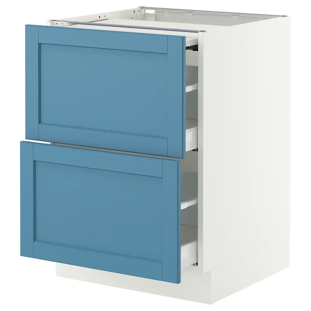 SEKTION / MAXIMERA Wall cabinet with 4 drawers - white/Lerhyttan blue 15x15x20 ". MAXIMERA drawer is a smooth-running, full-extension drawer with built-in dampers so that it closes slowly, softly, and quietly. Sturdy frame construction, ¾" thick. Suspension rail sold separately.