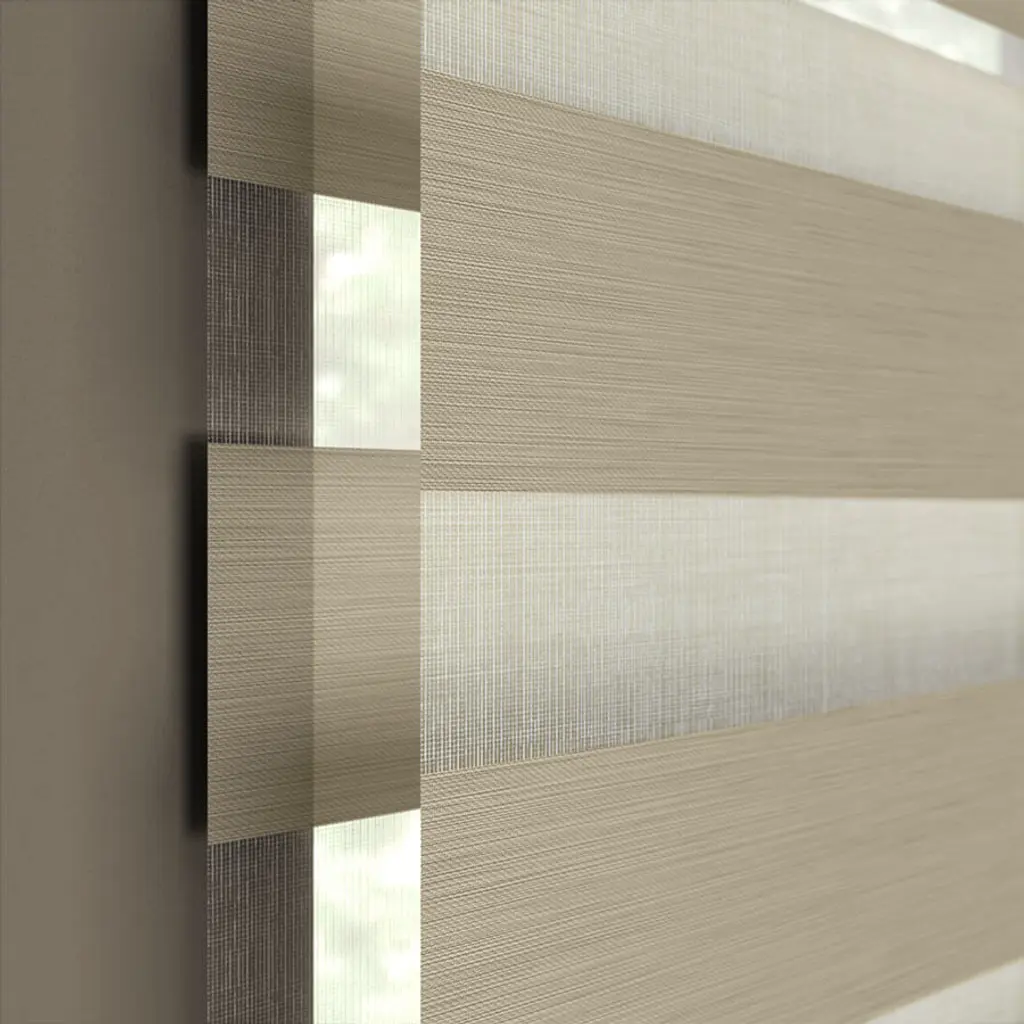Select Room Darkening Dual Shade – Modern Zebra Blinds with Flexible Light Control and Privacy Achieve stylish privacy and light control with Select Room Darkening Dual Shades from Select Blinds. These zebra-style shades feature four-inches (4”) of alternating sheer and opaque fabric bands that align to give you the best of both worlds: filtered light or room-darkening privacy at a simple adjustment.