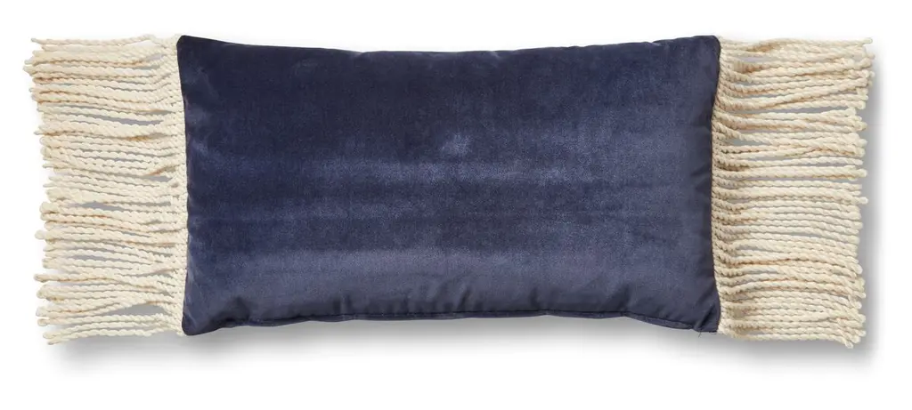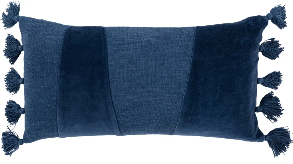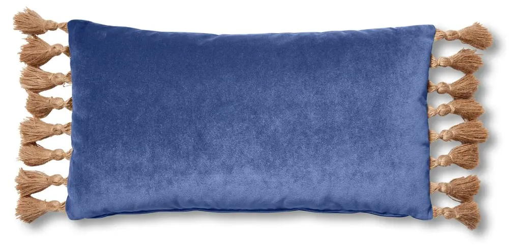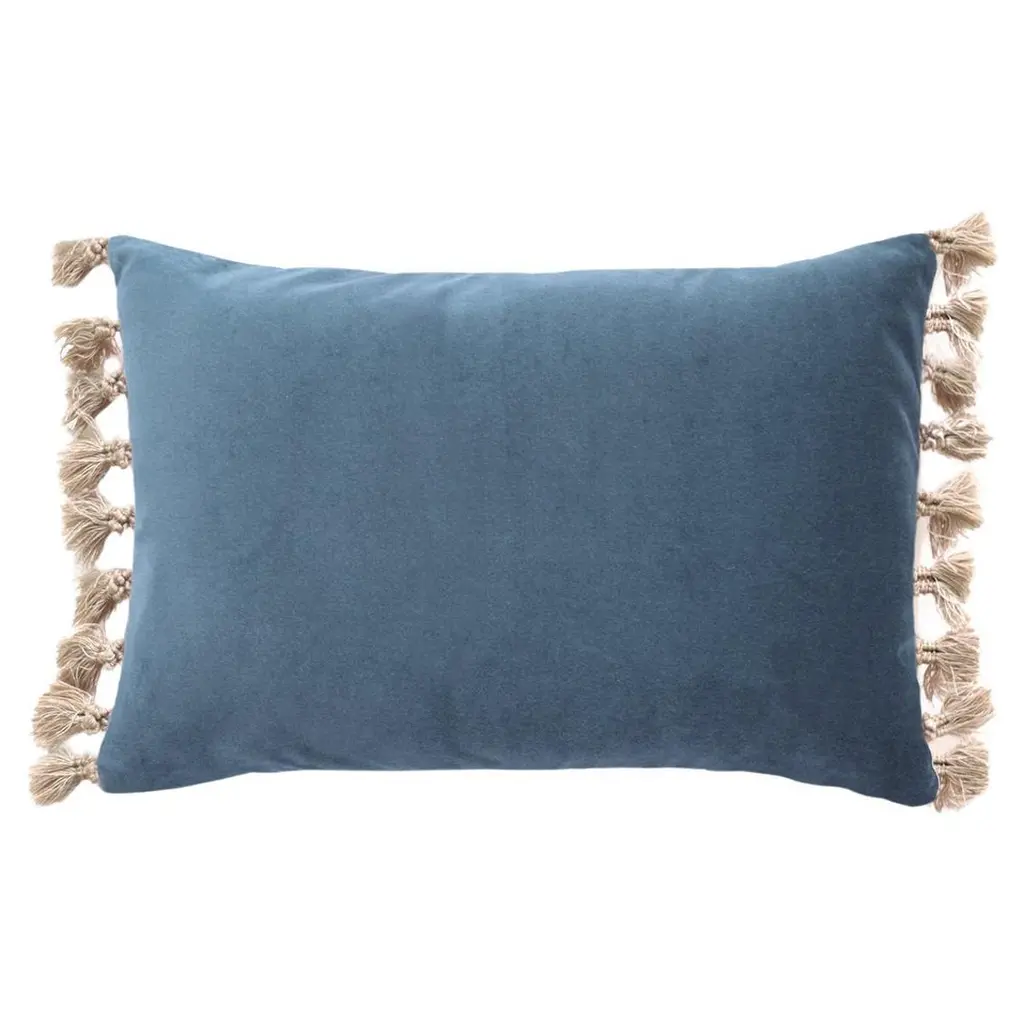 Selenita Cobalt Blue Fringed Velvet Deluxe Handmade Decorative Cushion