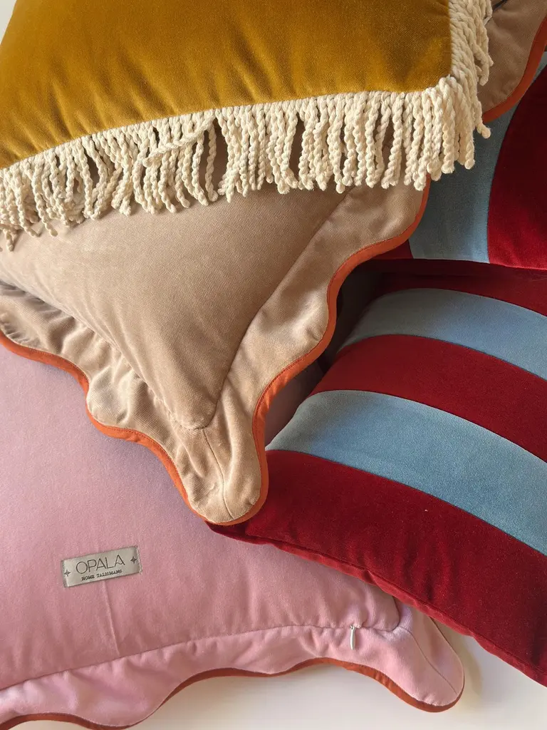 Inspired by the allure of crystals, gems, and precious stones, this luxurious velvet cushion will spark and spread beauty, positive energies, and comfort throughout your living space: like a true talisman for the home.Each cushion is handmade by local artisans from a soft and opulent premium cotton velvet, made to last. Elegant and sophisticated, SELENITA cushion will elevate your home decor with a touch of color and joy.25x40 cm (exluding tassels height)100% cotton velvet + cotton tasselsmade to order in Portugalas an handmade product, small variations may occur