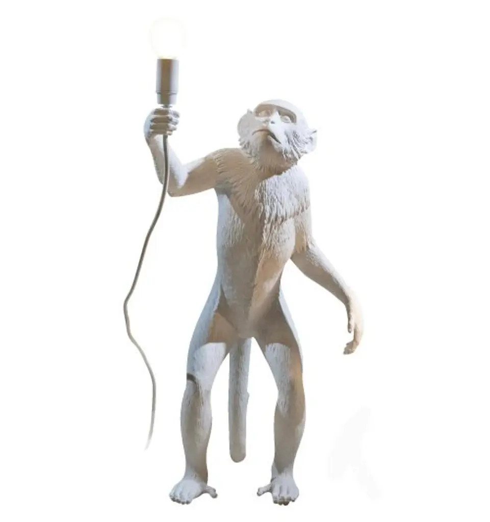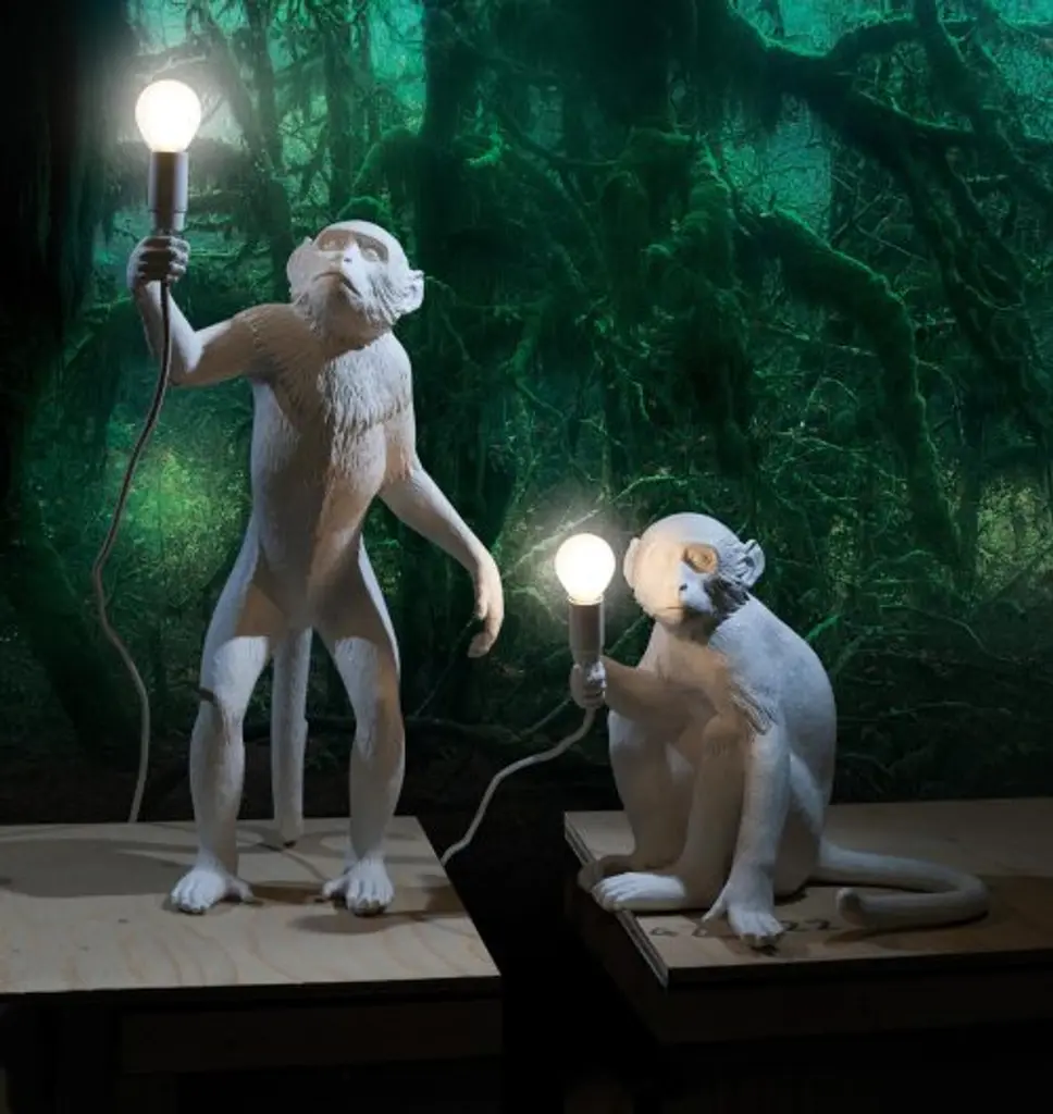 New from Seletti, the Seletti Monkey Lamp is a wild yet functional lighting design by the Italian designer Marcantonio Raimondi Malerba. Like in much of Malerba’s previous art and design (such as Sending Animals and Ale Plantana), the Seletti Monkey Lamp uses a naturalistic figure to explore relationships between people and animals. Here, the resulting trio of lamps has a human quality to its expression at the same time that it resembles something out of a science museum. Each of the three primates is quite detailed and poses sitting, standing, or hanging while holding an exposed LED bulb. Made of resin and hand-finished in white, the designs have a contemporary, consciously artistic quality to them as well.