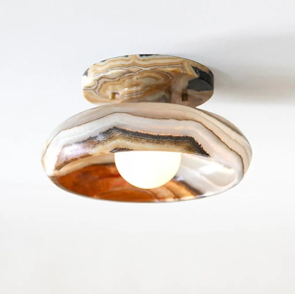 Semi Flush Mount In Hand Carved Terra Onyx, Piedra Lighting Collection