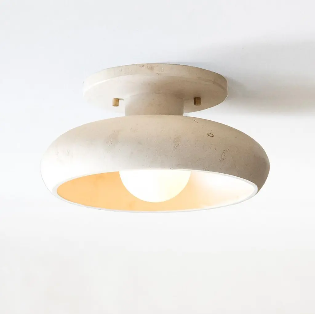 Semi Flush Mount In Hand Carved Travertine Marble, Piedra Lighting Collection