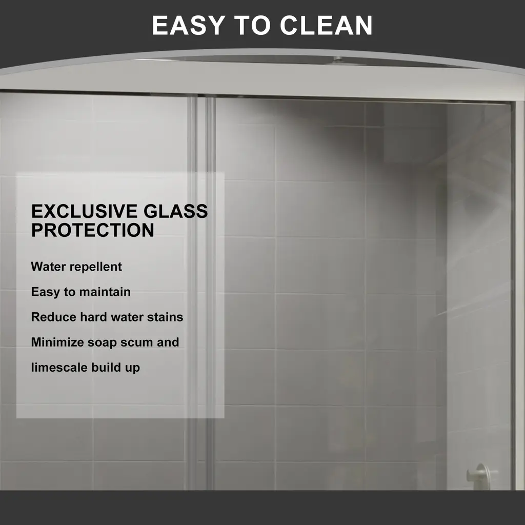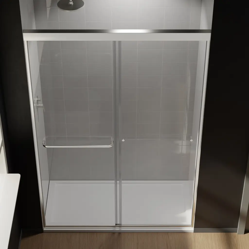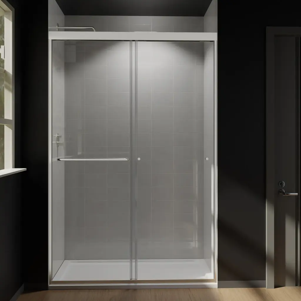 Semi-Frameless Double-Sliding Shower Door With Clear Glass - 48 In.wx72 In.h - Silver