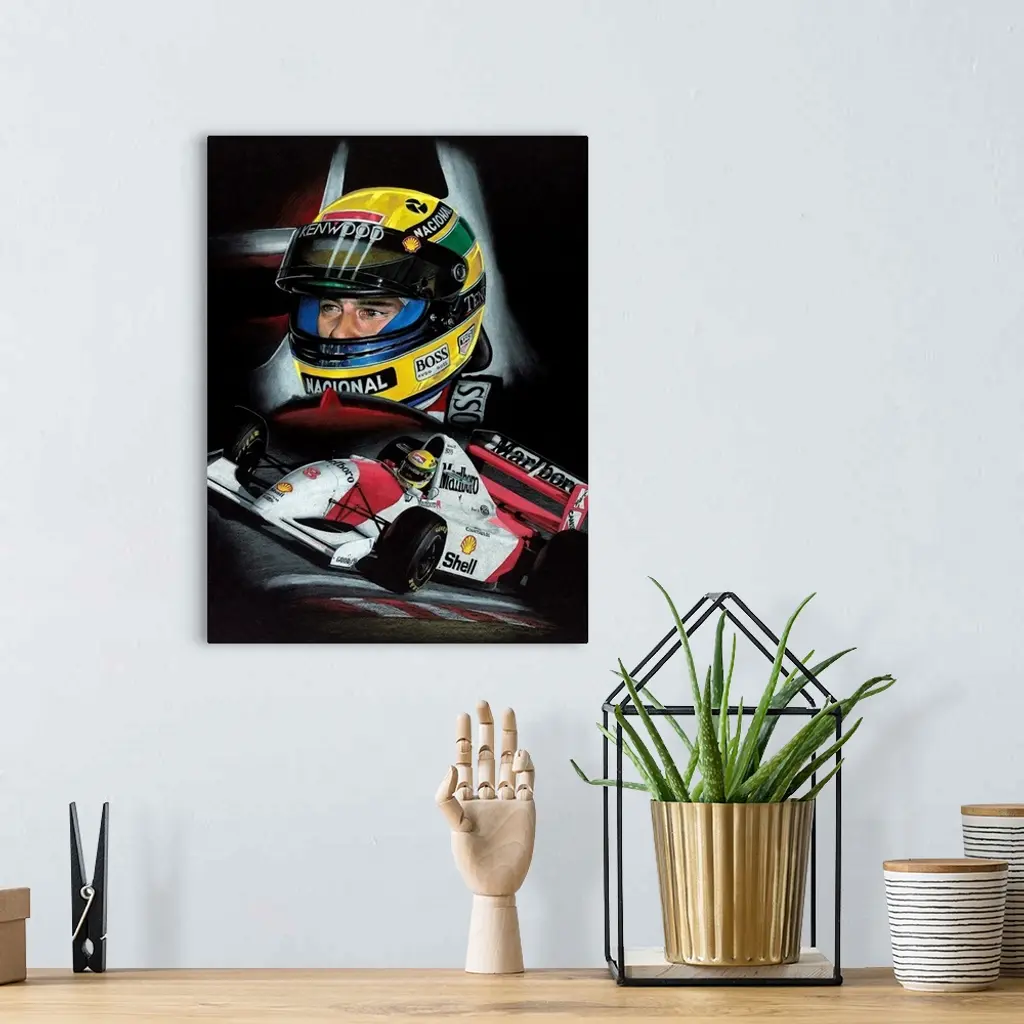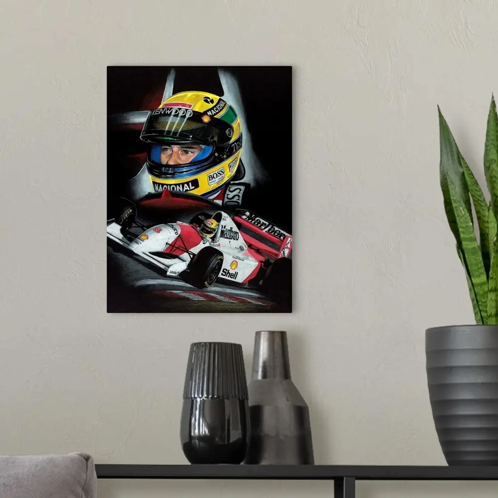 Illustration with a composite of a driver and a Marlboro/Shell Formula One car in action.