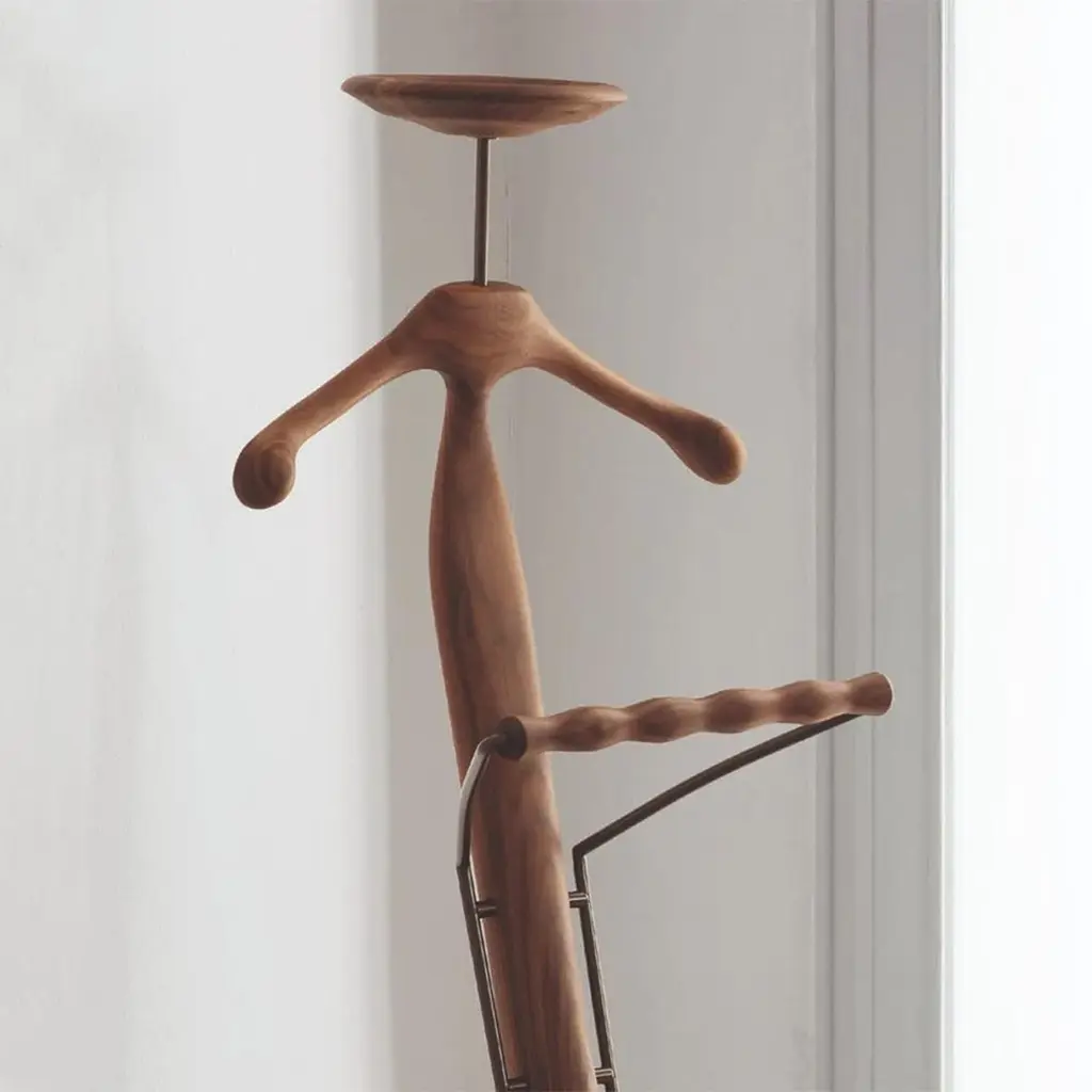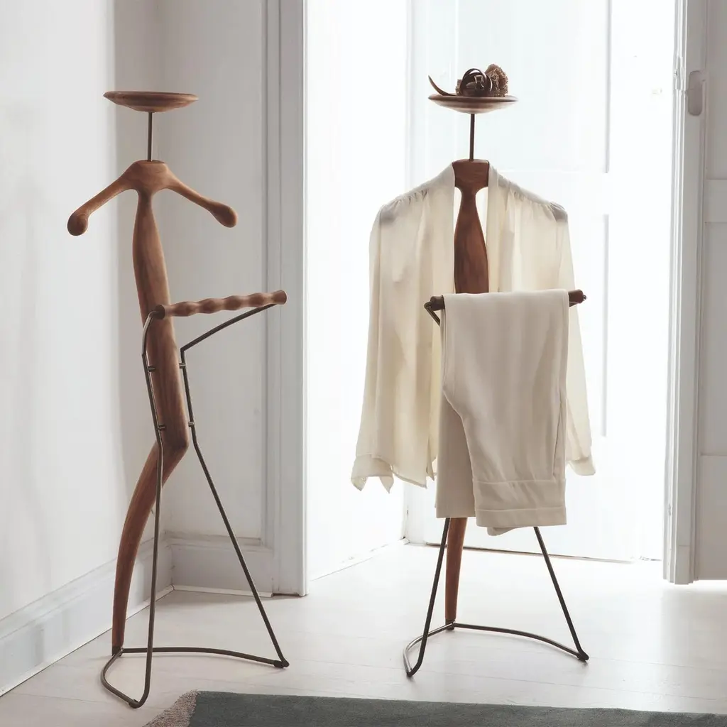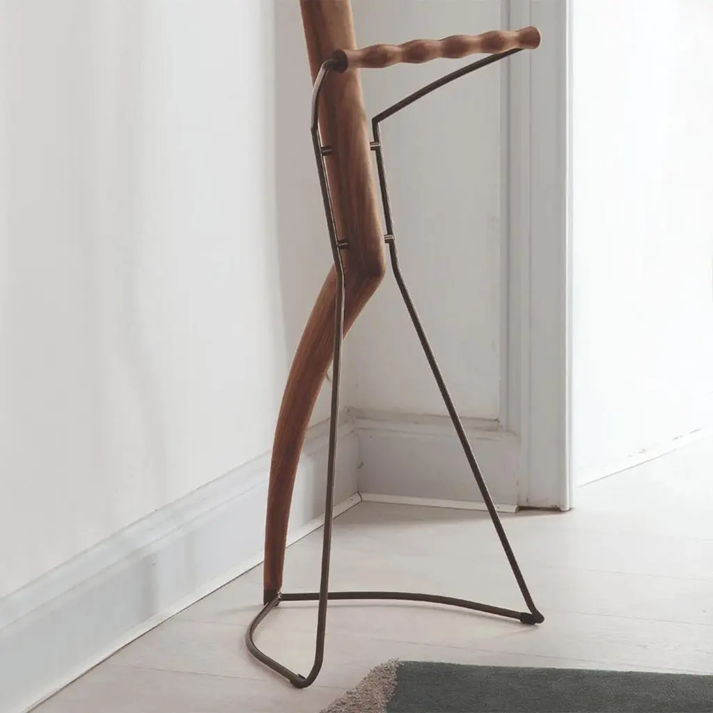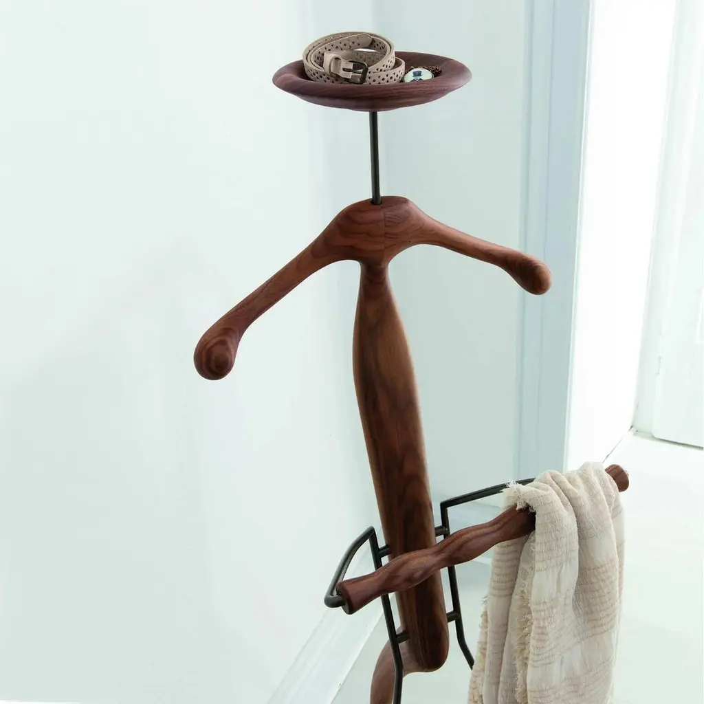 Dressboy Senor Walnut with iron frame indark finish and with solid walnut wood, withwalnut round dish at the top.Also available on request in moka stained finishor in wenge stained finish.