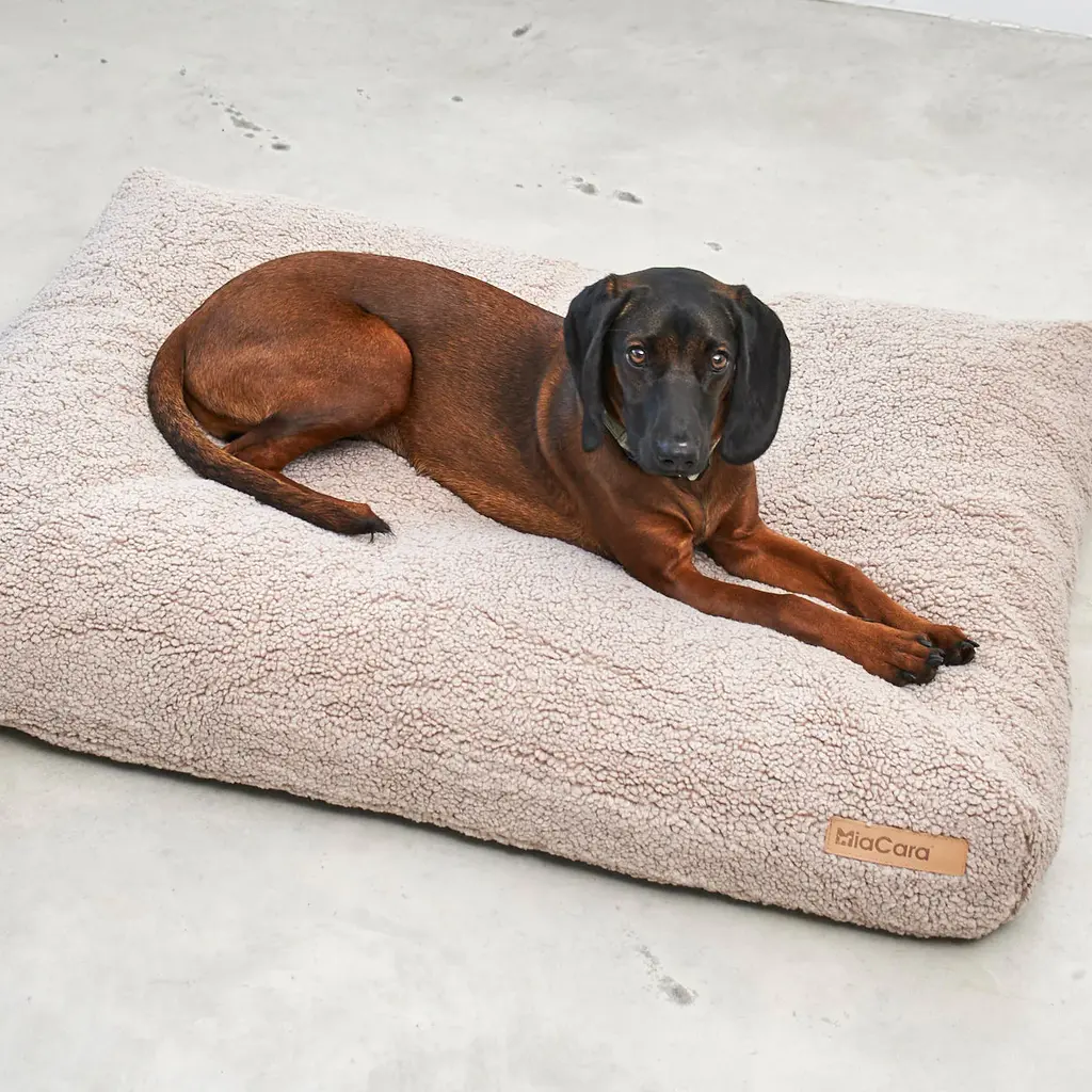 Indulge your furry friend with the luxurious Senso Dog Cushion from MiaCare. Made of soft bouclé fabric, it adds a tasteful touch to your living space. Filled with orthopaedic visco-foam and sturdy side sections, it provides ultimate comfort and support for your dog's body and joints. The removable and washable cover ensures durability for everyday use. Highlights