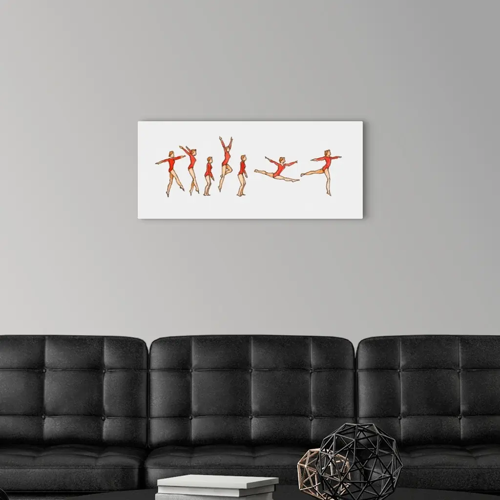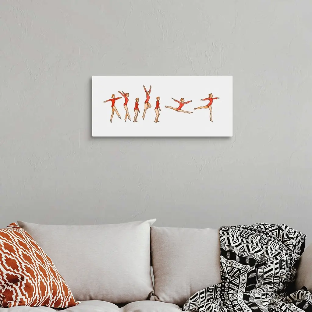 Sequence of illustrations showing female gymnast competing on floor wall art for home and office decor. Discover canvas art prints, photos, mural, big canvas art and framed wall art in GreatBigCanvas.com's varied collections.