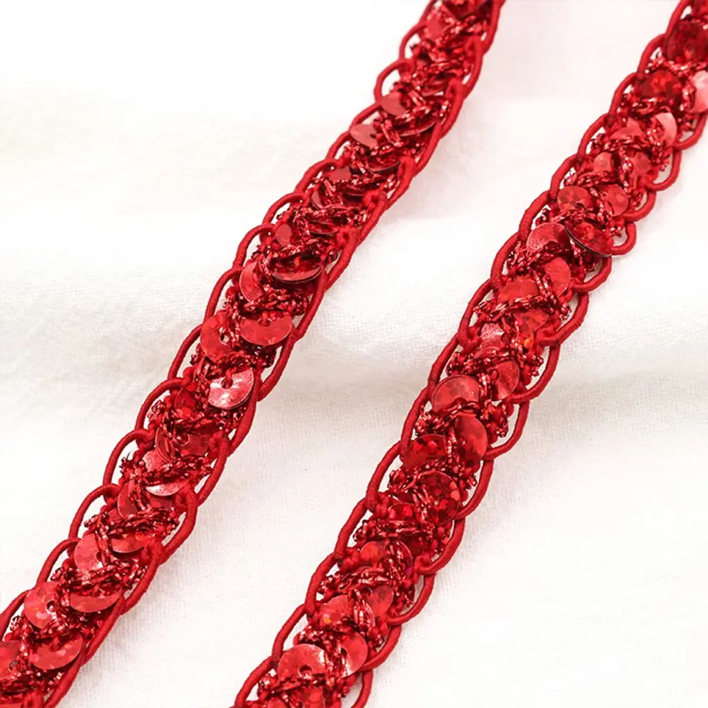 Sequin Braid Cord Trim, 0.4 Inch Glitter Laser Sequin Strip, Sewing Sequin Ribbon Diy Bling Fabric Party Decoration, 13 Yards, Red