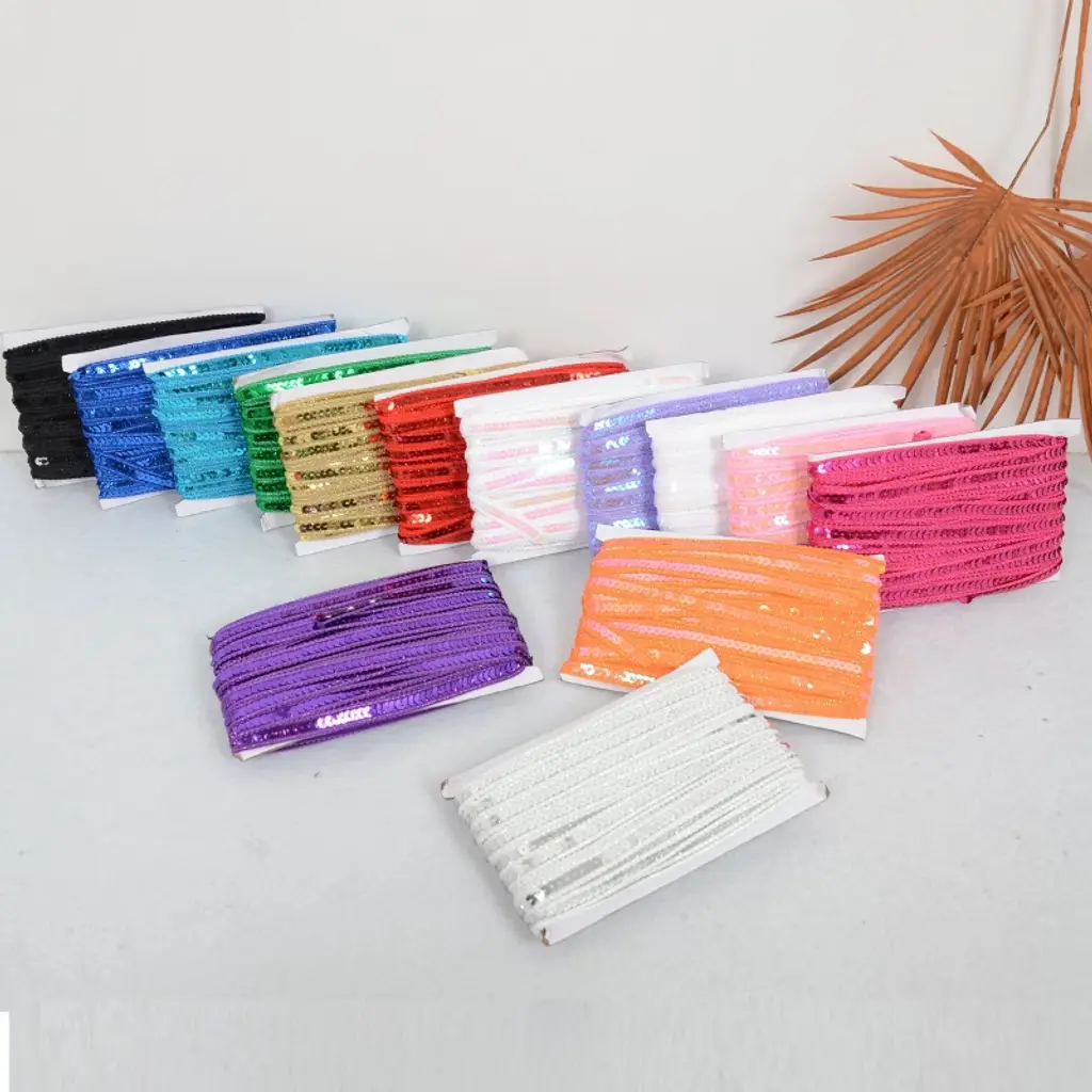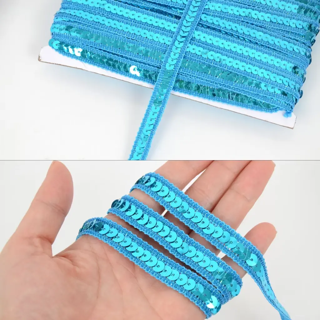 Whether you're creating beautiful Christmas tree decorations, preparing for a Halloween or New Year party, or simply looking to add some bling to your DIY Craft, this sequin stripe is a wonderful choice. Its versatility makes it ideal for a wide range of applications, including birthday gift packaging and DIY fringe sewing projects.The flat design of the glitter ribbon ensures easy sewing and effortless application, while the metallic sequins catch the light and create a dazzling effect. Let your creativity shine with this eye-catching trim that adds a touch of glamour to any project.Easy to use, this sequin trim can be cut to the desired length and sewn or glued onto your chosen fabric or craft material. Its flexibility and durability make it great for various sewing and crafting techniques.Choose this sparkle sequin trim for your sewing embellishment needs and let your creations sparkle and shine.