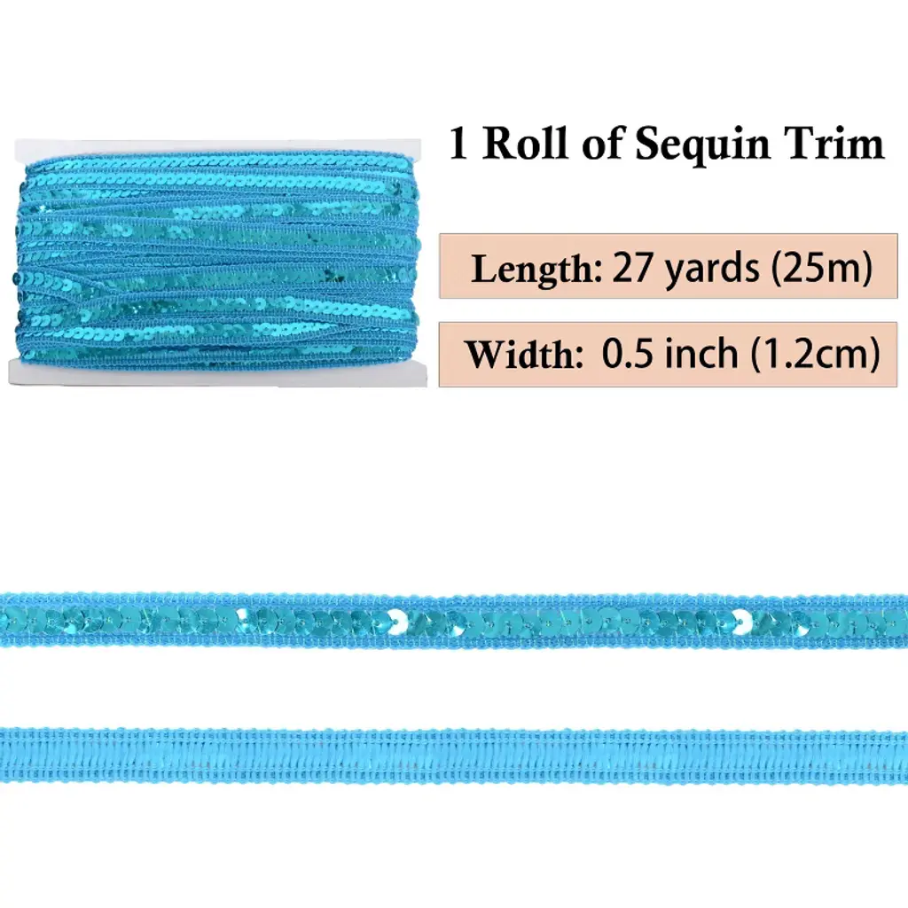 Sequin Trim, 0.5 Inch Flat Glitter Sequin Ribbon, Sparkle Metallic Sequin Strip, Bling Fabric Diy Sewing Embellishment, 27 Yards, Blue