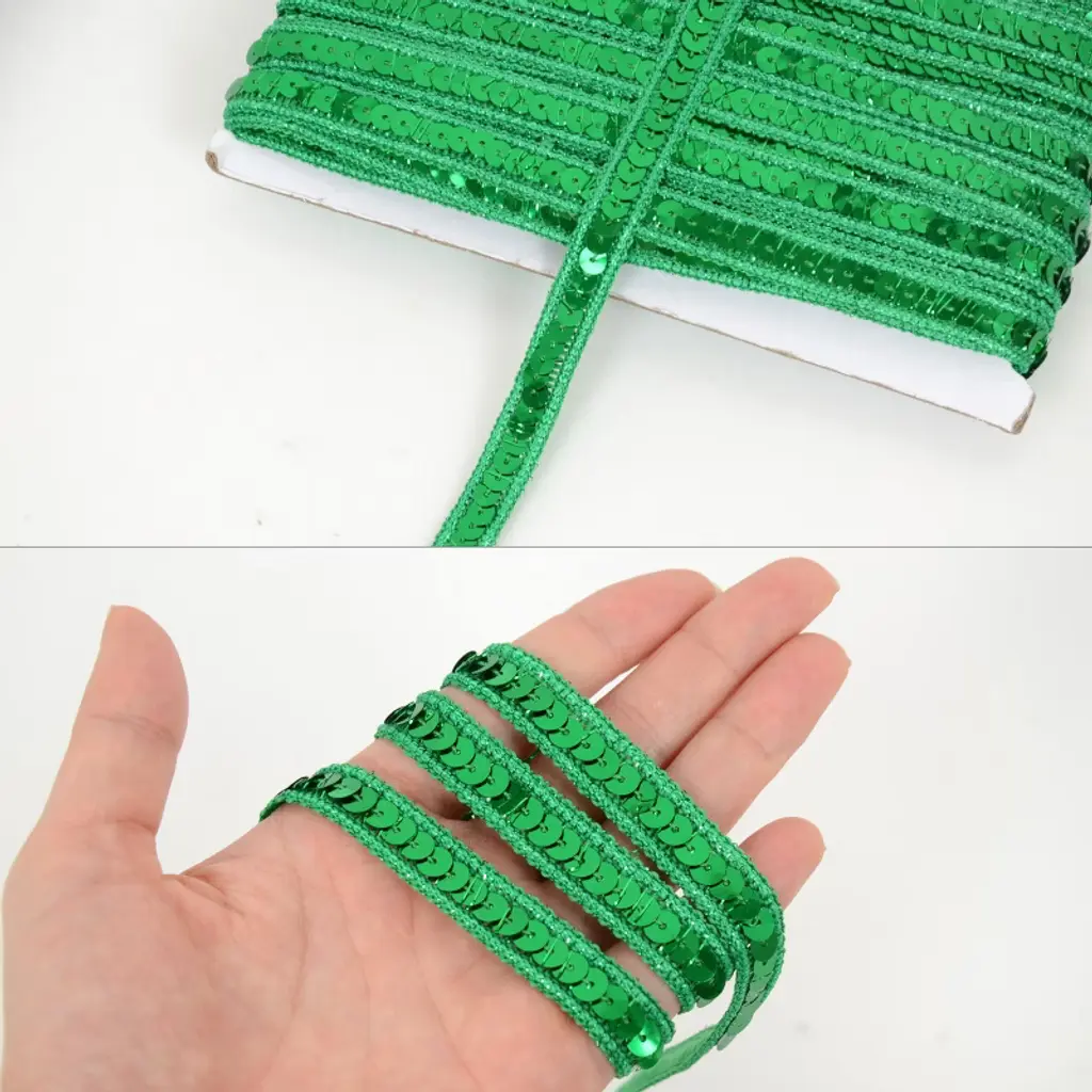 Sequin Trim, 0.5 Inch Flat Glitter Sequin Ribbon, Sparkle Metallic Sequin Strip, Bling Fabric Diy Sewing Embellishment, 27 Yards, Green