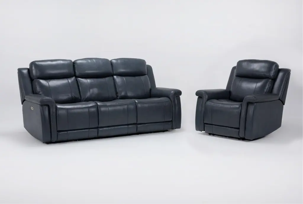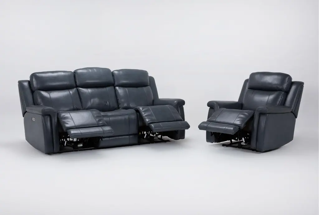 Serena Ii Steel Blue Leather 2 Piece Power Zero Gravity Reclining Sofa And Recliner Set