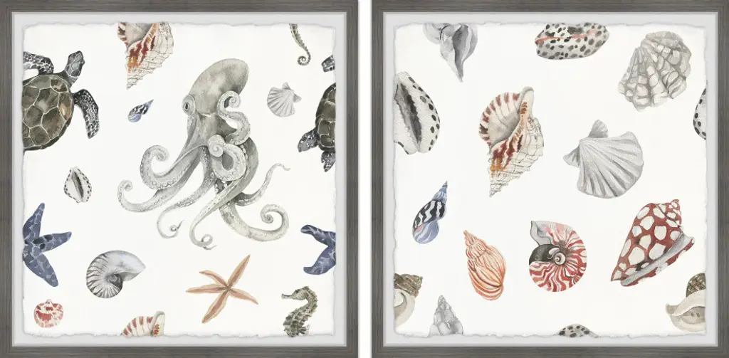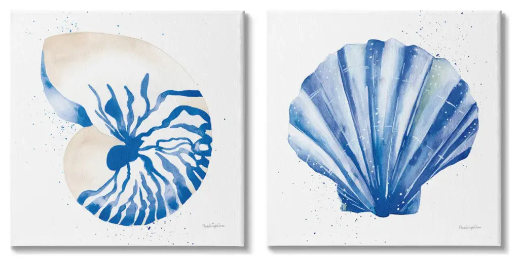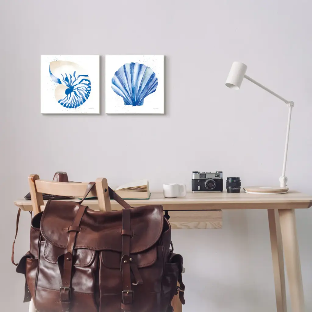 Serene Blue Seashell Clam Simple Design, 2Pc, Each 12 X 12