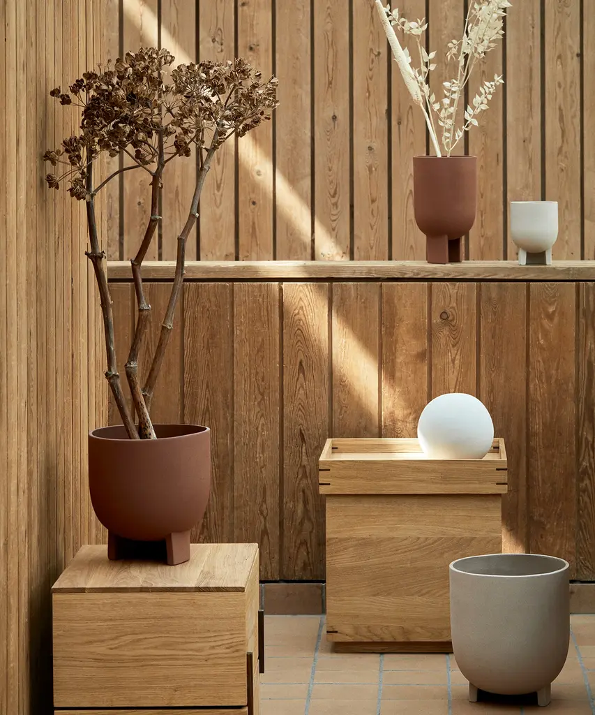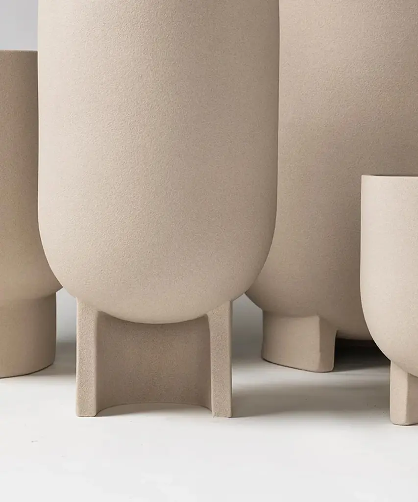 Add a touch of natural style to any living space with the Serene Flowerpot by Kristina Dam Studio. Kristina Dam’s pledge of sculptural minimalism and affection for arches is embodied in the Serene Flowerpot series. With a distinct silhouette, the half-circle foot uplifts the tubular flowerpot from the ground. The Serene flowerpots are all made from terracotta and glazed on the inside making them water-resistant. This decorative flower pot is available in red or sand. Designed by Kristina Dam Studio in Copenhagen, Denmark.