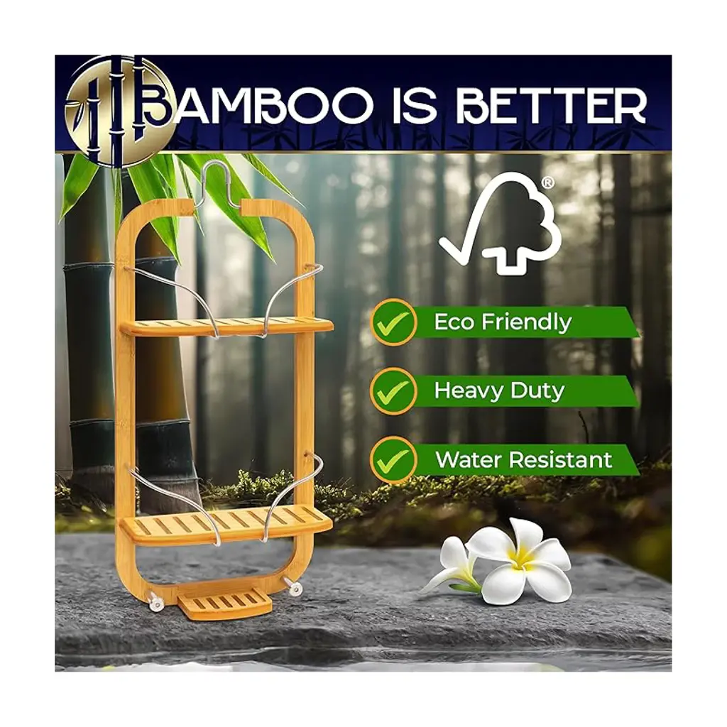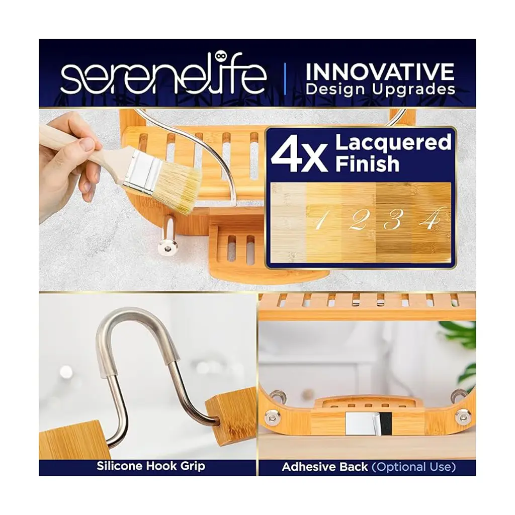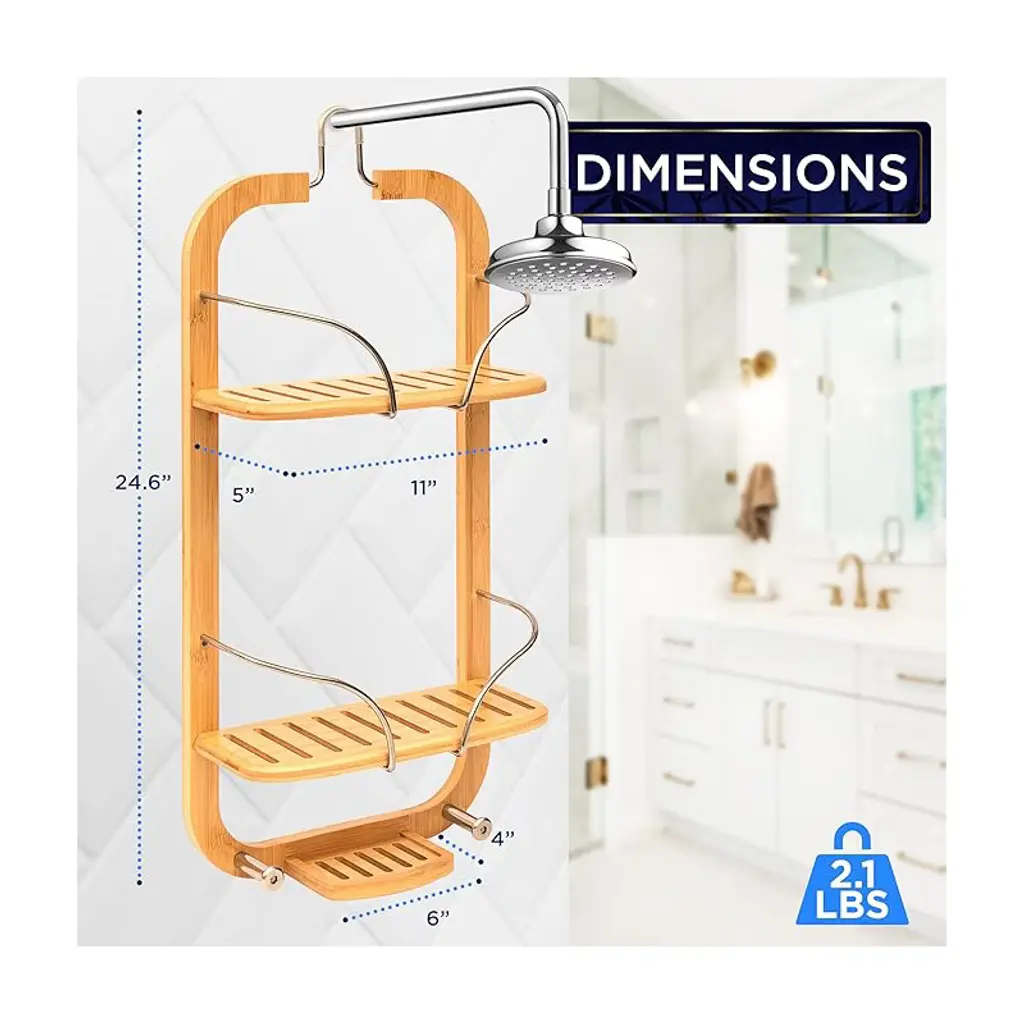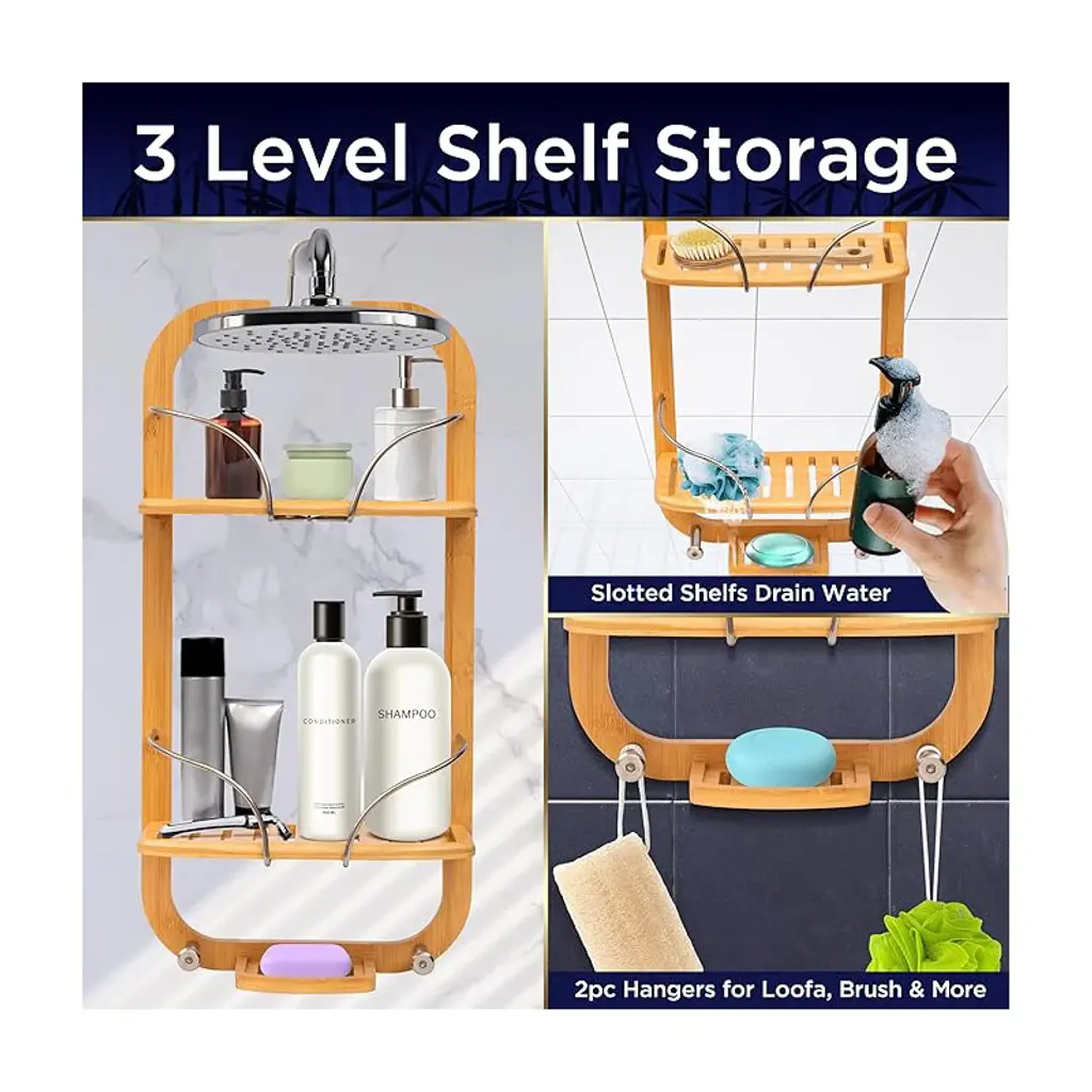 Serenelife Bamboo Hanging Shower Caddy With 3 Tiers